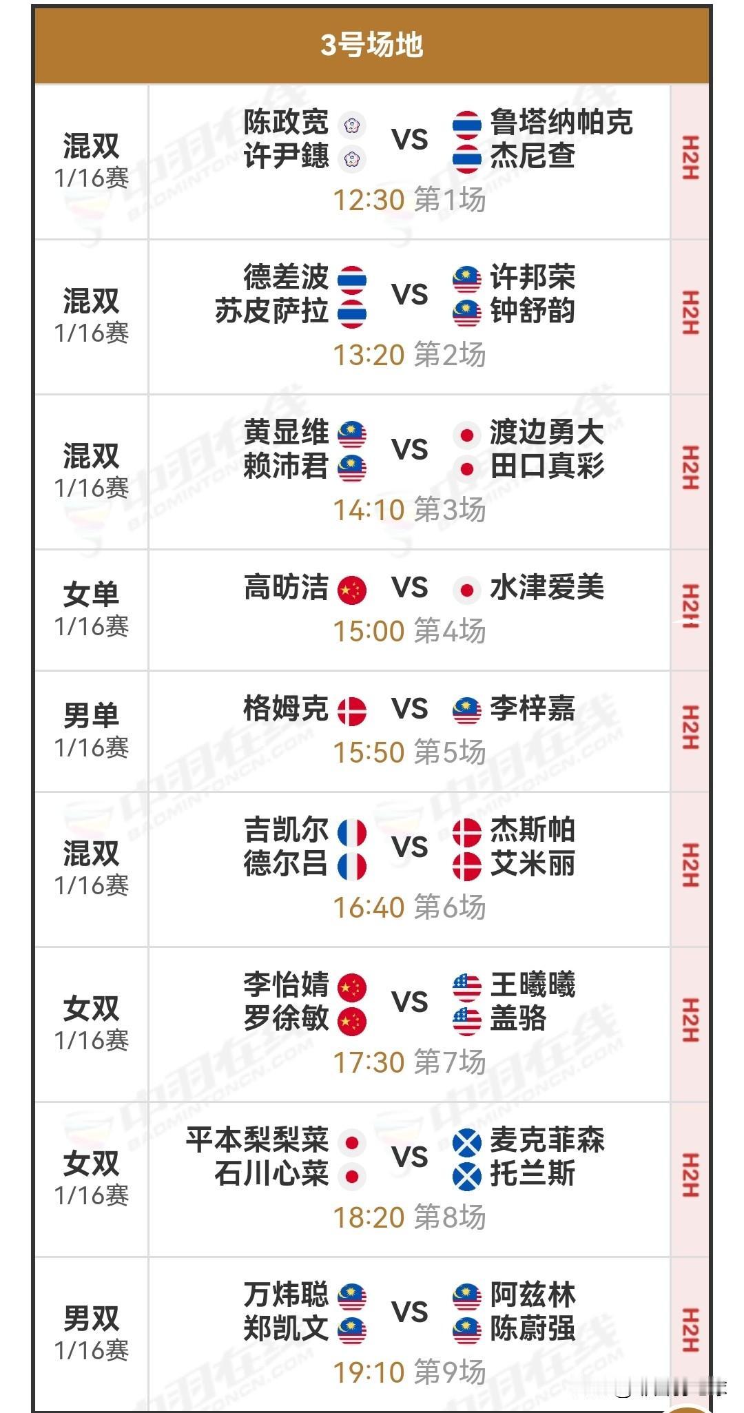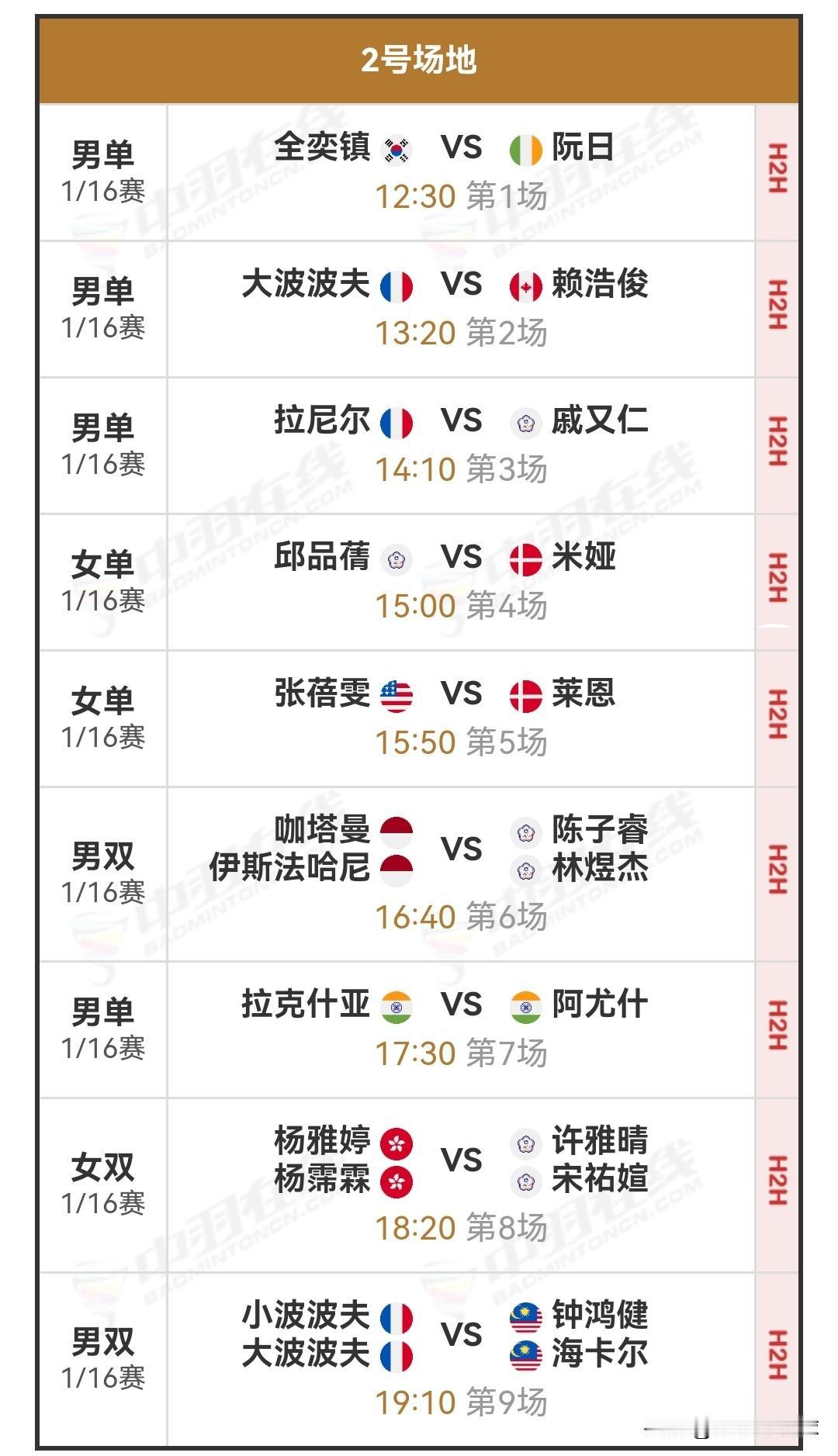 1月13日印度羽毛球公开赛首日对阵安排 明日,超级750级别的2026年印度羽毛球公开赛将在印度首都新德里拉开首轮战幕。这一赛事汇聚了全球各路羽毛球精英,国羽同样派出主力球员参战,着实看点满满。关注我,一同为国羽加油助威! 明日北京时间12:30,1/16决赛(一)的比赛将正式开启,届时共有四块场地同时进行比赛。明日,高昉洁将对战水津爱美,李梓嘉会与格姆克一决高下,梁王组合也将出战。详细对阵安排如下: 国羽赛程 羽毛球 羽毛球爱好者 羽毛球比赛 羽毛球赛程 羽毛球赛事 李梓嘉