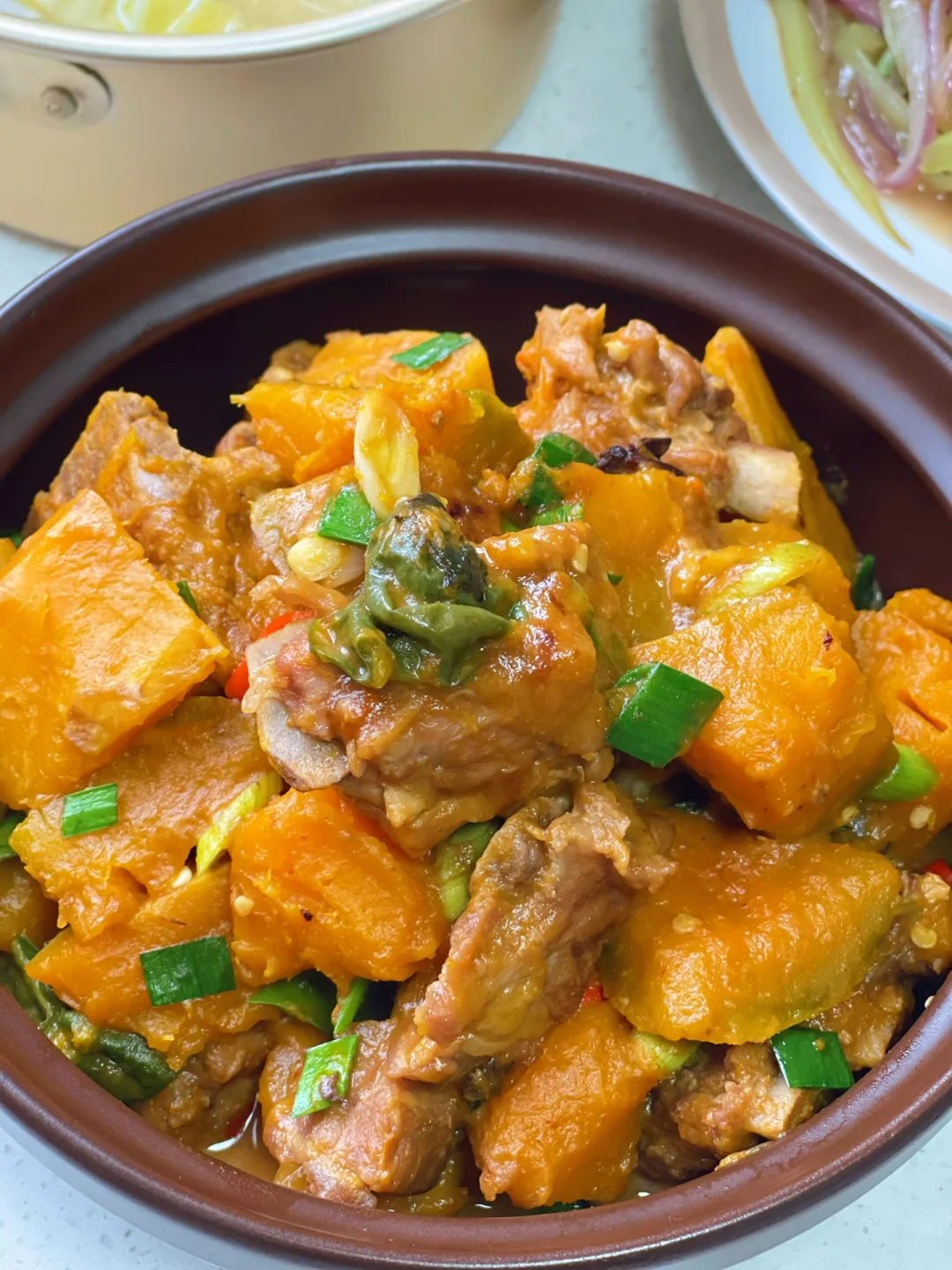 小时候屋前屋后都种了很多南瓜总是会想很多办法把它消耗掉上次做那个清炒南瓜片很多亲都做了,而且都说超级的好吃,今天呢我又做了排骨烧南瓜,这菜很久没吃了,果然还是想象中的味道好吃