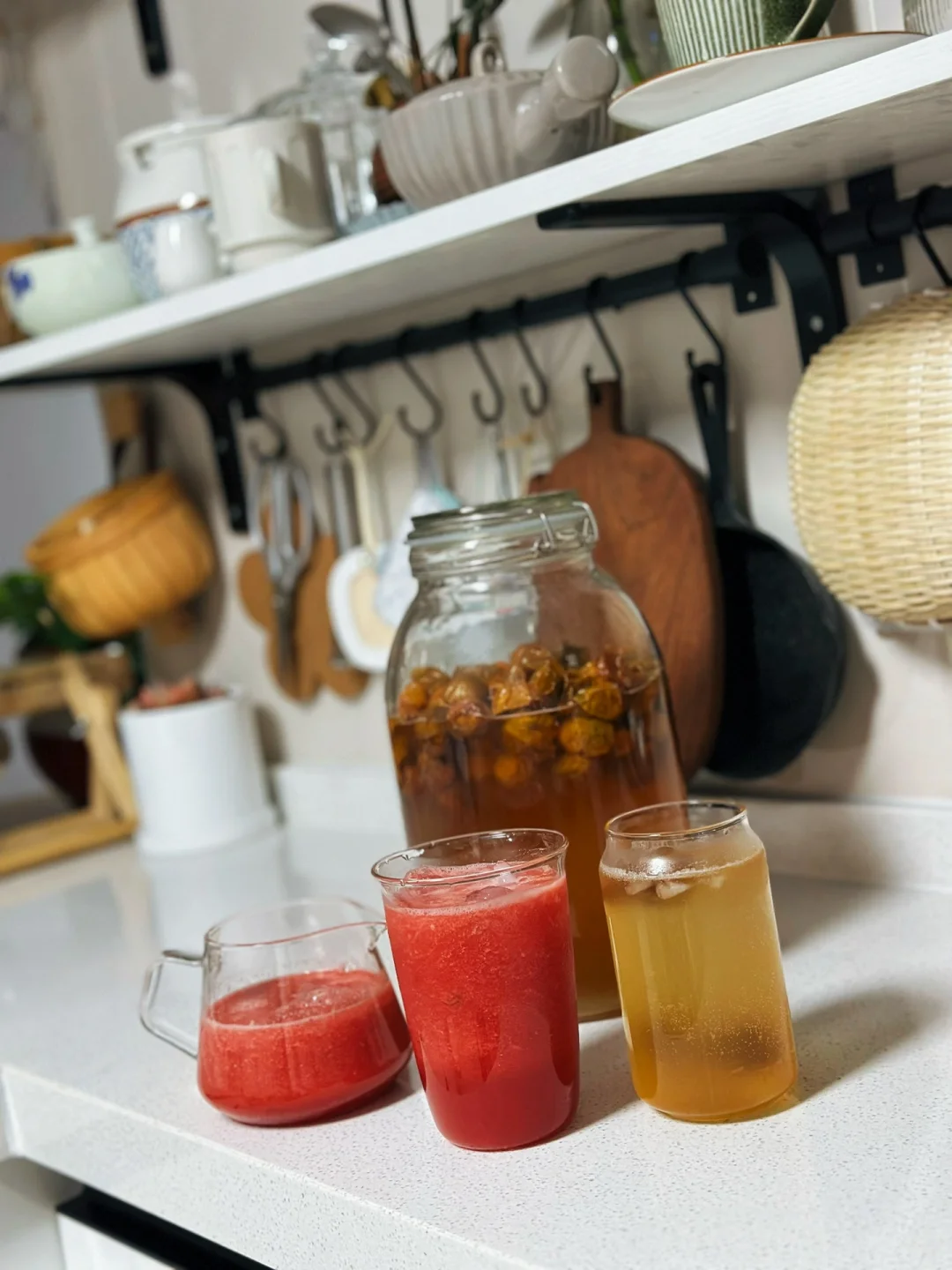 今年第一次做梅子露才两三个月加了冰块气泡水就很好喝了,奈何现在梅子少了前几天又买了一次结果坏了一多半儿,所以打起了其它水果的注意,又做了桃子露青苹果露期待一下,想看看你们的各种露[偷笑R][偷笑R][害羞R]
