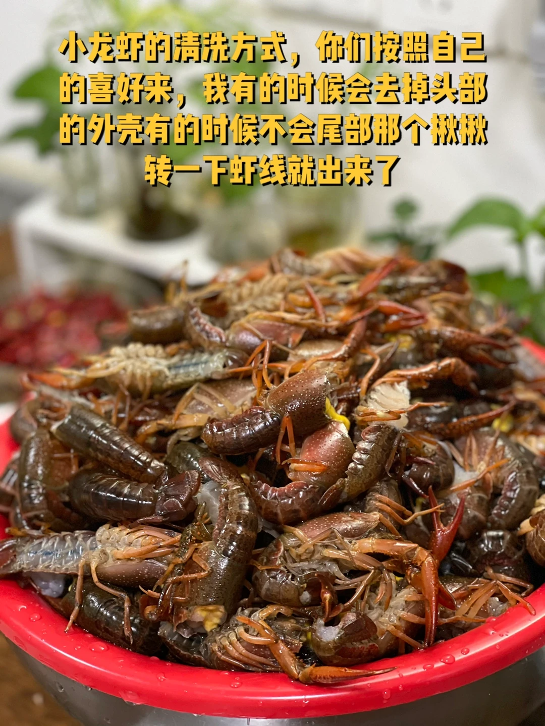 2. 小龙虾的清洗方式,你们按照自己的喜好来,我有的时候会去掉头部的外壳有的时候不会尾部那个揪揪转一下虾线就出来了