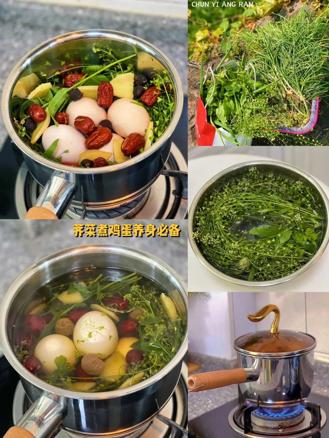 荠菜煮蛋做法: