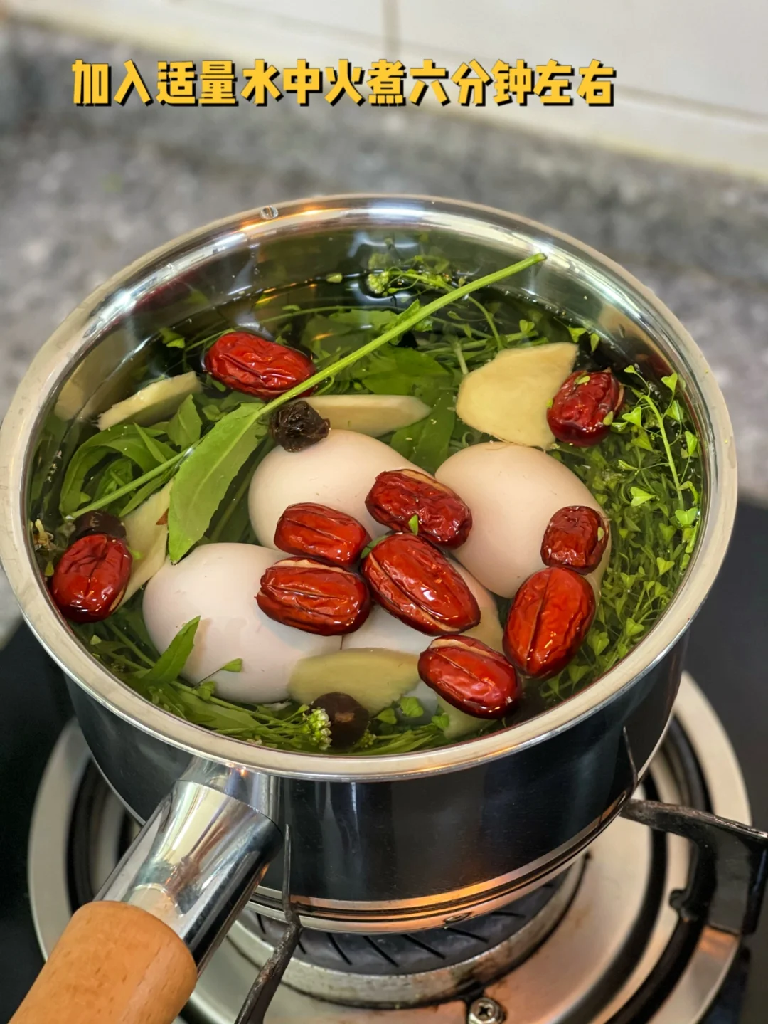 4. 加入适量水中火煮六分钟左右