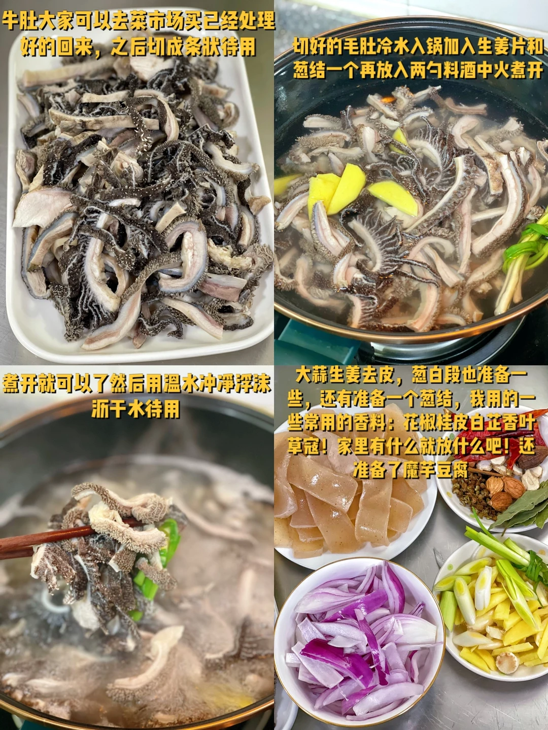 1. 牛肚大家可以去菜市场买已经处理好的回来,之后切成条状待用
