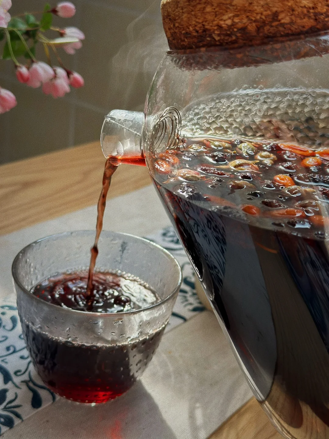桑葚,玫瑰花,桂圆,枸杞,具有疏肝理气,活血化淤,补气血,改善睡眠质量养颜抗老等功效 路边摘的花儿随便插了一下也好美,你们知道是什么花儿吗