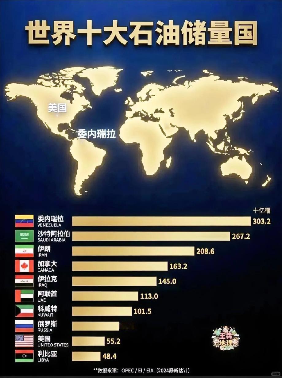 委内瑞拉拥有超过3000亿桶的石油储量,是世界上石油储量最大的国家,约占全球已探