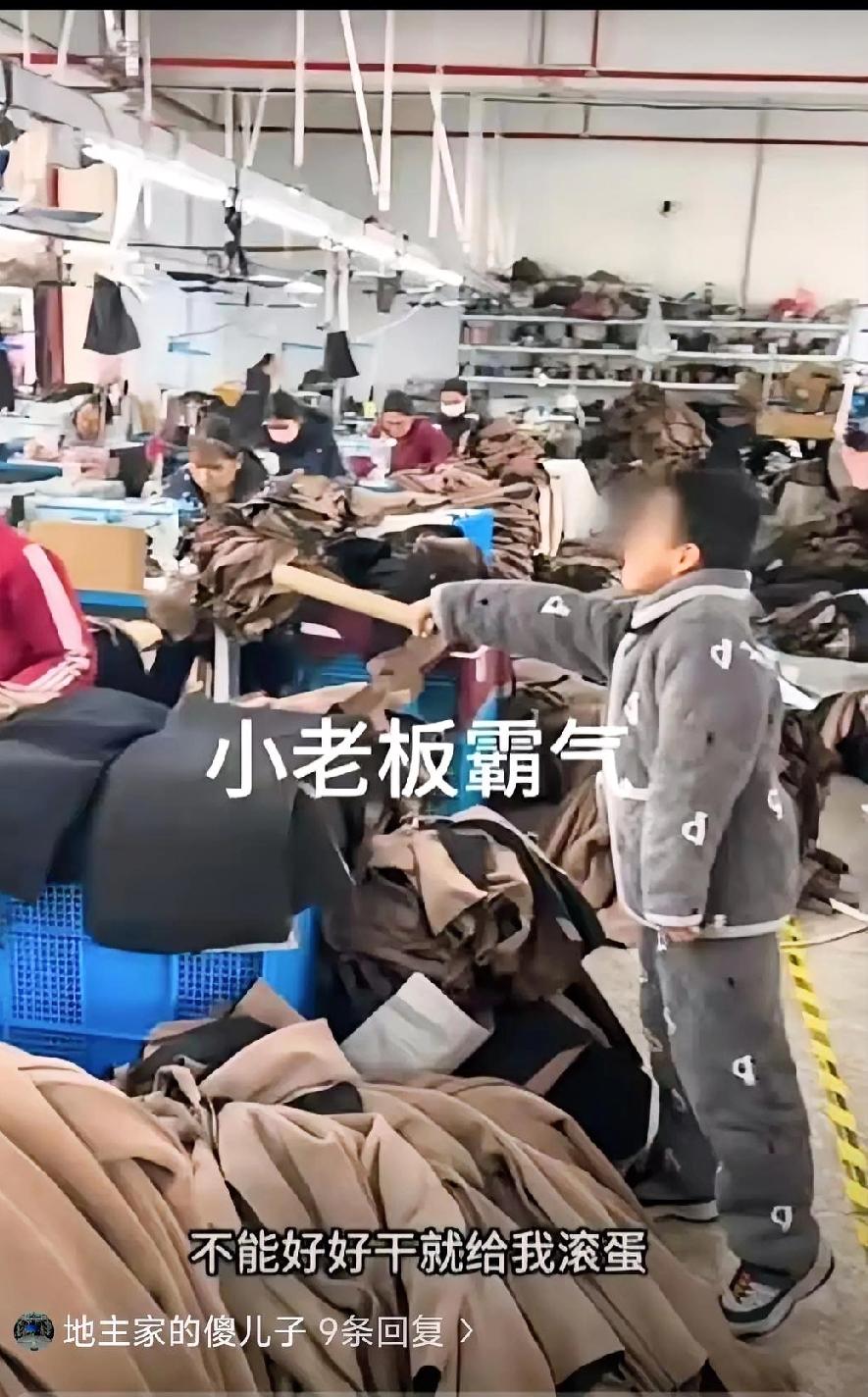 离谱!老板放任娃拿棒子吼女工,一句“不好好干就滚蛋”,结局大快人心! 浙江金华东阳这家女装小厂彻底火了!老板的娃拿着棒子冲进车间,对着一群中年女工吆五喝六,放狠话“不好好干就滚蛋”,老板在旁边居然一声不吭。这样的事不止一次,甚至还招呼员工端茶倒水! 结果女工们集体撂挑子辞职,生产线直接停摆!老板这下彻底傻眼,急忙拍视频道歉求返工。 打工图的是尊重不是受气,没把员工当回事,再怎么道歉也难挽回人心啊!你觉得员工该心软回去吗? 视频里那孩子趾高气扬的模样,看得人血压直飙。手里攥着的棒子不是玩具,是老板眼里“高人一等”的特权象征。一群年过四十的女工,谁不是上有老下有小,谁不是为了几两碎银在流水线上熬着腰酸背痛。她们忍得了加班加点,忍得了计件工资的压力,却忍不了一个毛孩子的吆五喝六,更忍不了老板那副默许纵容的嘴脸。 最让人膈应的,是老板全程沉默的态度。孩子不懂事,大人能不懂吗?他站在旁边看着女工们被呵斥时的手足无措,看着自家娃把车间当成耍威风的地盘,愣是没说一句公道话。这哪是放任,分明是骨子里就没把这些女工当人看。在他眼里,这些埋头苦干的人或许只是流水线上的螺丝钉,是召之即来挥之即去的工具,根本不配得到尊重。 更过分的是,这样的事情还不是第一次。今天让端茶倒水,明天让捏肩捶背,后天就敢拿着棒子指手画脚。恶的苗头一旦没被掐灭,只会越长越歪。那些女工们之前的忍气吞声,不是懦弱,是为了保住这份养家糊口的工作。可退让换不来体谅,只会让对方得寸进尺。 当最后一根稻草压下来的时候,这群平时沉默寡言的女工,终于选择了集体反击。撂挑子的那一刻,她们心里憋着的委屈和愤怒,怕是比车间里的缝纫机噪音还要响亮。生产线停摆的瞬间,老板才慌了神。他以为这些女工离不开这份工作,却忘了,谁都有尊严,谁都能挺直腰杆说不。 后来老板拍的道歉视频,看着就像一场拙劣的表演。镜头前他搓着手说自己错了,说不该纵容孩子,说希望大家回来上班。可早干嘛去了?真要是有心尊重员工,就不会看着孩子胡闹而无动于衷。真要是把员工当家人,就不会把“不好好干就滚蛋”的嚣张,默许成孩子嘴里的口头禅。 这个结局,简直是大快人心。它狠狠打了那些傲慢老板的脸——别以为打工的就没脾气,别以为手里握着饭碗,就能随意践踏别人的尊严。女工们用集体辞职的方式告诉所有人,工作可以再找,尊严不能丢。那些把员工当草芥的老板,迟早会被自己的傲慢反噬。 换作是任何一个有骨气的人,都不会心软回去。今天能容忍孩子拿棒子吼人,明天就能变本加厉地刁难。道歉不过是生产线停摆后的权宜之计,骨子里的傲慢和轻视,从来就没改过。 各位读者你们怎么看?欢迎在评论区讨论。