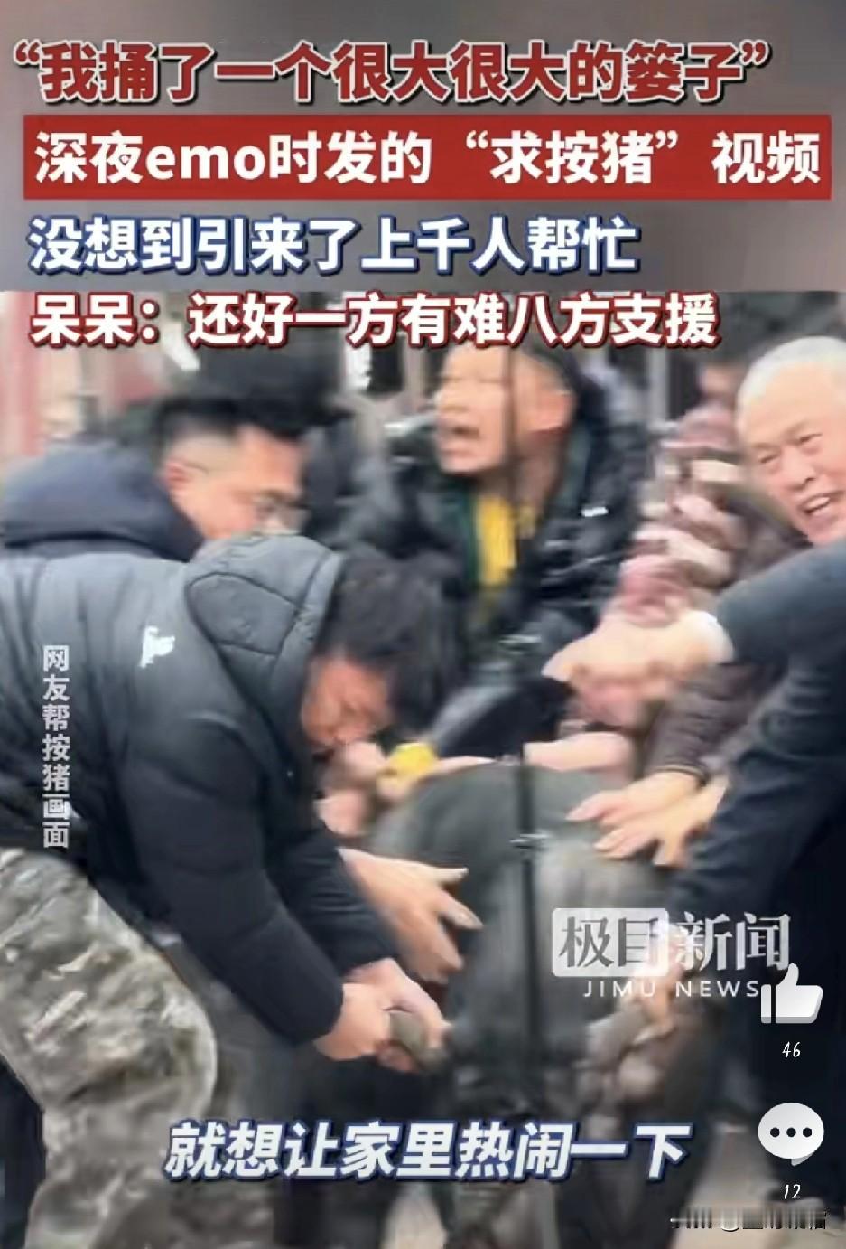 新年的闯祸第一人圆满落幕 呆呆的杀猪汤宴圆满落幕,13号正式喊话让大家都回归正常的生活。这场流量狂欢先告一段落。 不得不说乐于助人,是心灵的温暖,是生活的甜蜜。伸出援手传递正能量,让爱在人与人之间流动。