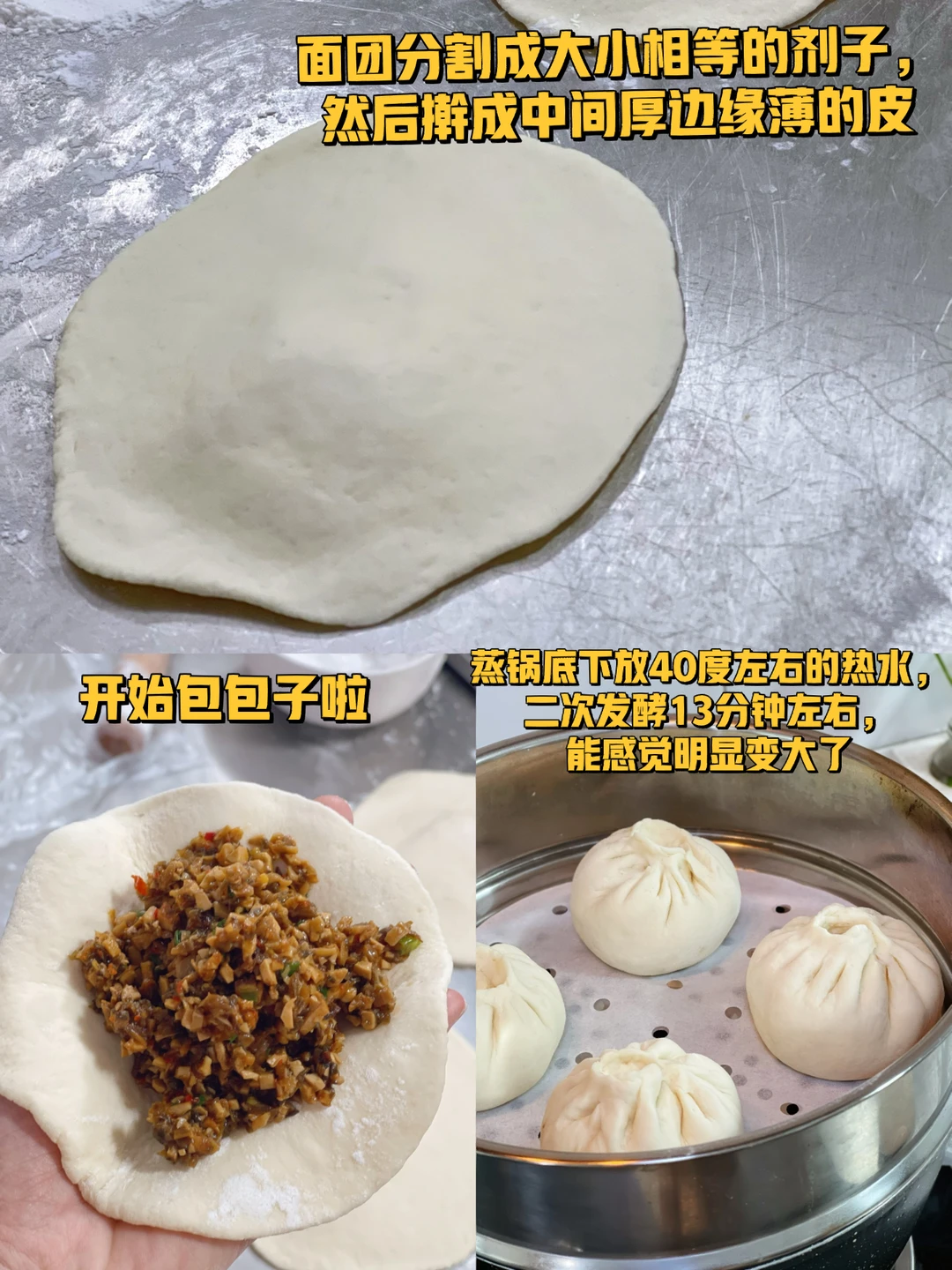 12. 发酵好的面团少量多次呛一些面粉进去多揉一会儿这样包子的表皮更光滑也会更好白