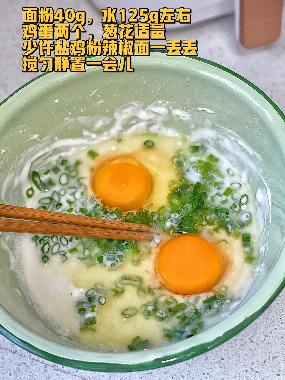 1. 面粉40g,水125g左右鸡蛋两个,葱花适量