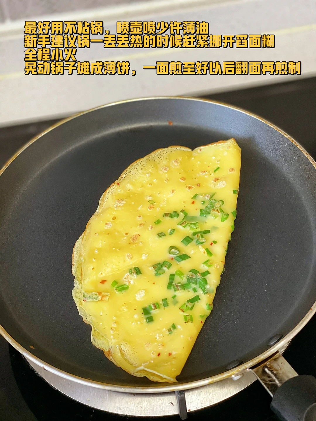【我们可以放一个湿抹布在锅边上灶台上,煎好一张之后锅放在湿抹布上面速度降温,这样你们在操作下一张饼的时候不会因为锅温度高饼液体马上凝固】
