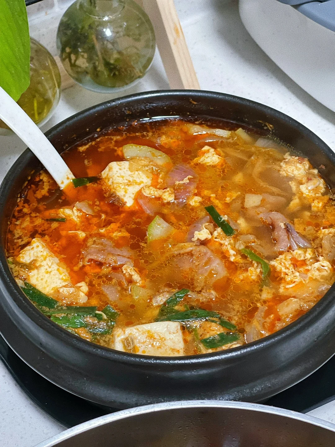 不知道最近是不是天气比较冷啊,总想喝口热乎的,所以餐桌上多了各种汤, 前几天在韩国料理店喝了这个泡菜豆腐汤,觉得挺好喝的所以也买了点泡菜豆腐什么的,其实在家也是能做出一样味道的