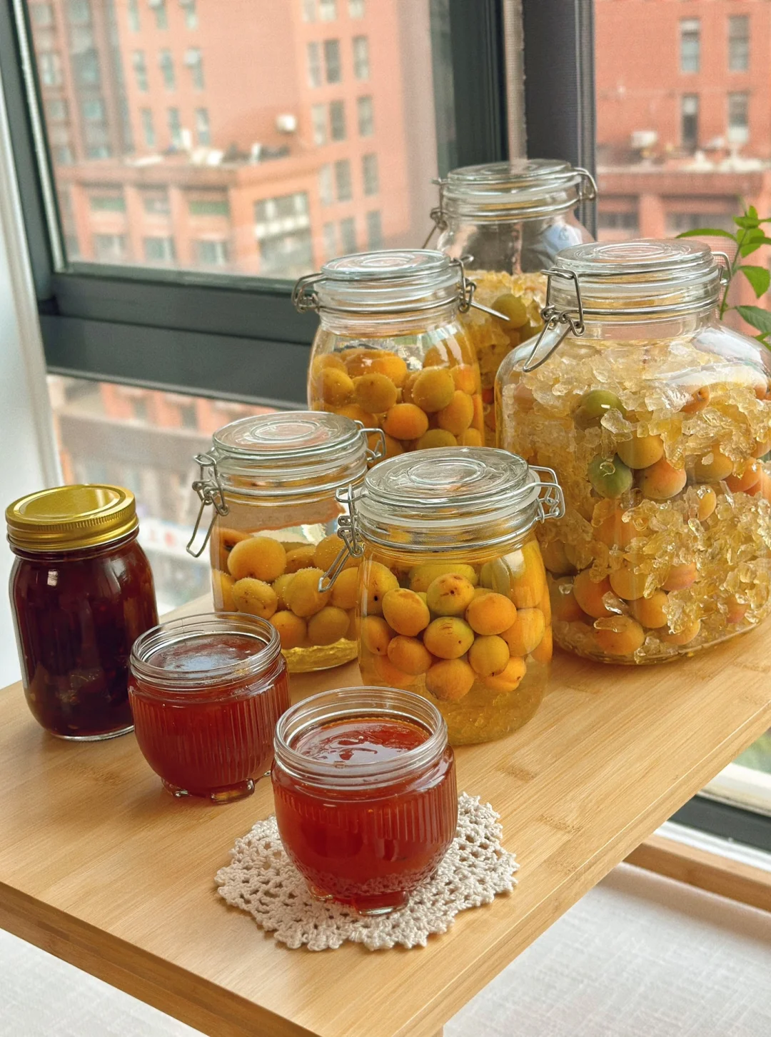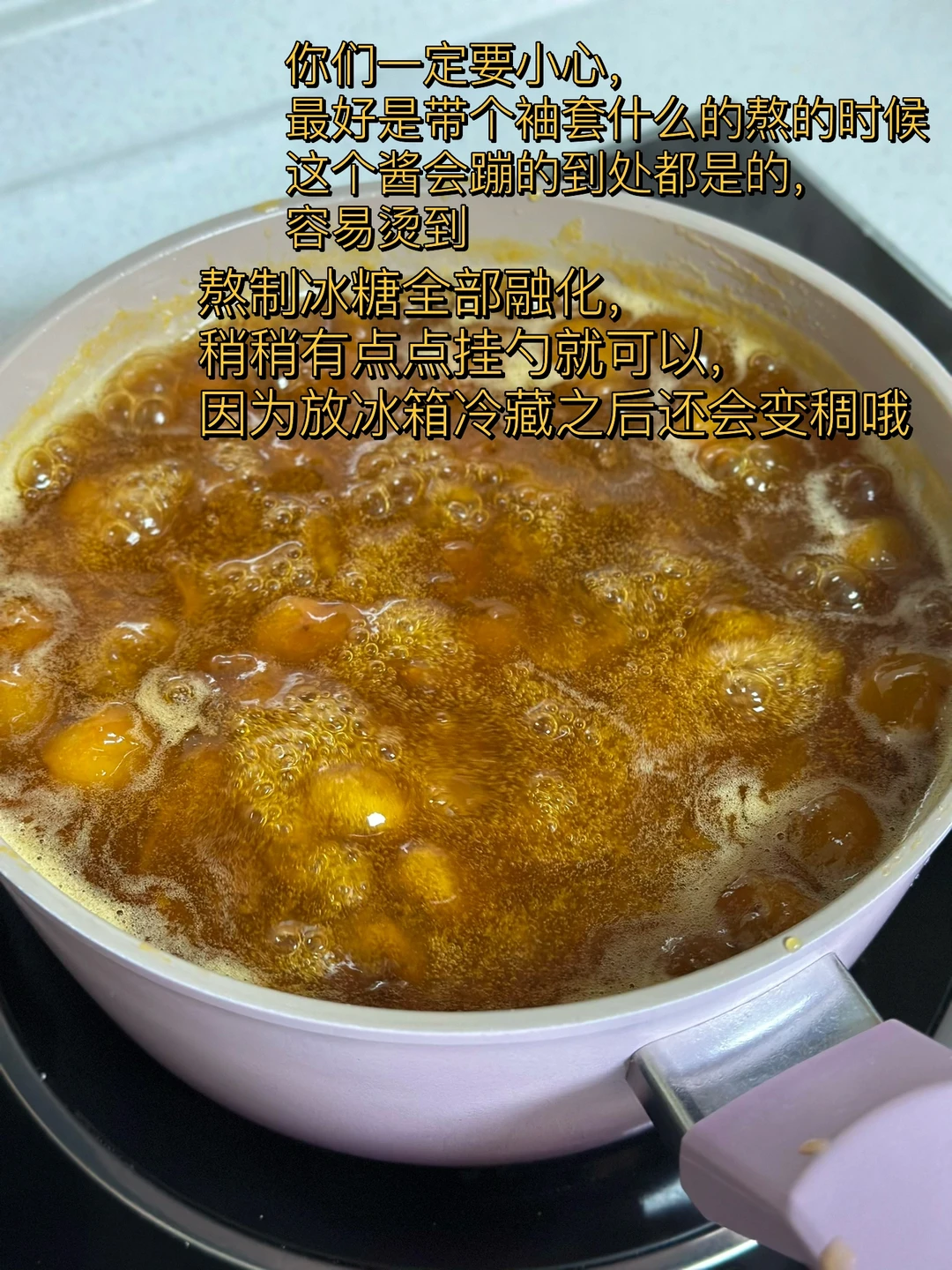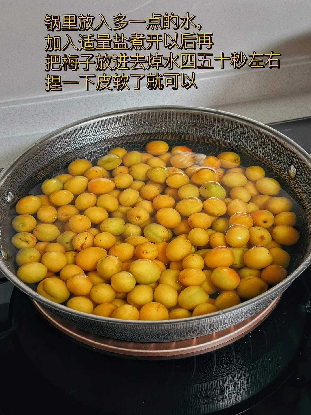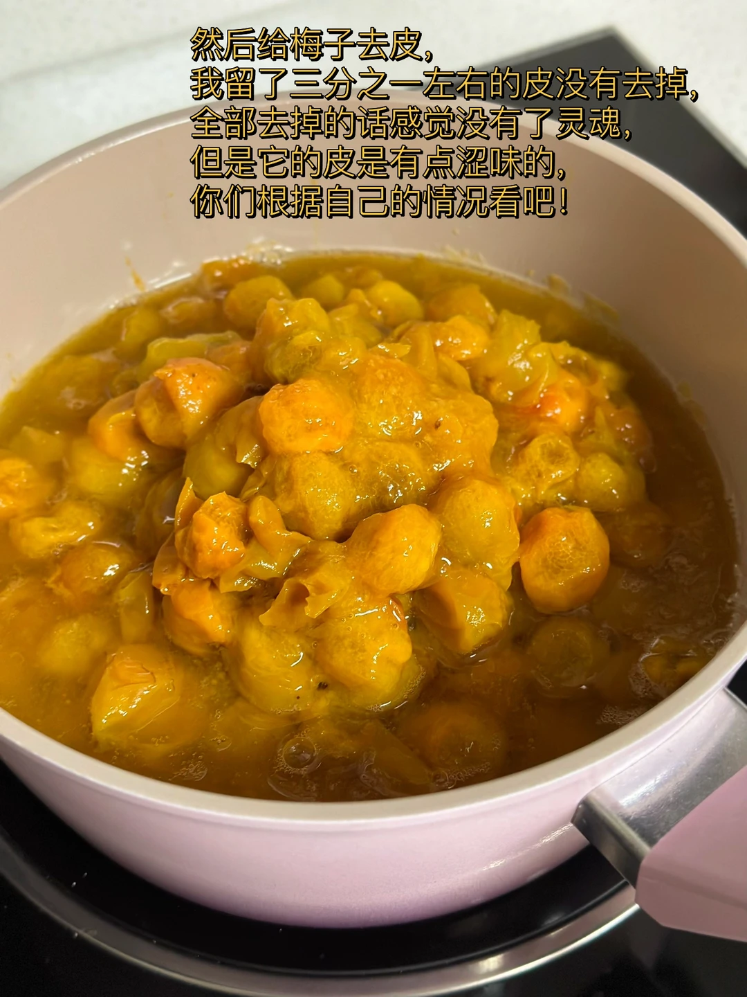 日常碎片PLOG 我真的很喜欢去采各种水果回来泡酒做酱,前段时间朋友圈看各地的朋友都在采梅子,我羡慕的不行在想苏州哪里有呢?然后发了个圈,朋友告诉了我详细地址就赶紧跑就去了摘了好多,开心的飞起回来就各种折腾 1. 前一段时间在朋友圈看见各地朋友都在薅梅子终于我也如愿了,朋友告诉了我一个地方去摘了很多 2. 还好会爬树,在顶部摘的都是比较大一点的,梅子颜色也很好看,新家的阳台拍照感觉不错哦 3. 梅子把蒂去掉之后,然后在盐水里泡个几个小时左右给它杀杀菌还能去掉一部分苦涩 4. 锅里放入多一点的水,加入适量盐煮开以后再把梅子放进去焯水四五十秒左右捏一下皮软了就可以 5. 然后给梅子去皮,我留了三分之一左右的皮没有去掉,全部去掉的话感觉没有了灵魂,但是它的皮是有点涩味的,你们根据自己的情况看吧! 6. 然后加入适量土冰糖,这个我是分好几次加的,一边熬的时候可以尝一下在加因为每个人的喜欢的口感不一样,这个糖也没办法完全絕對 7. 一定要用不粘锅熬先大火煮开再慢慢的转中小火不停的搅拌慢慢熬 8. 你们一定要小心,最好是带个袖套什么的熬的时候这个酱会蹦的到处都是的,容易烫到 9.熬制冰糖全部融化,稍稍有点点挂勺就可以,因为放冰箱冷藏之后还会变稠哦 10.给你们看看这个色泽多诱人哦,我拿漏勺把它给过滤了一下,细腻的部分配面包,带核的部分烧排骨不要太赞哦