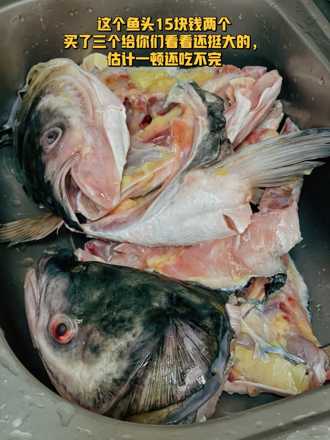 1. 这个鱼头15块钱两个买了三个给你们看看还挺大的,估计一顿还吃不完