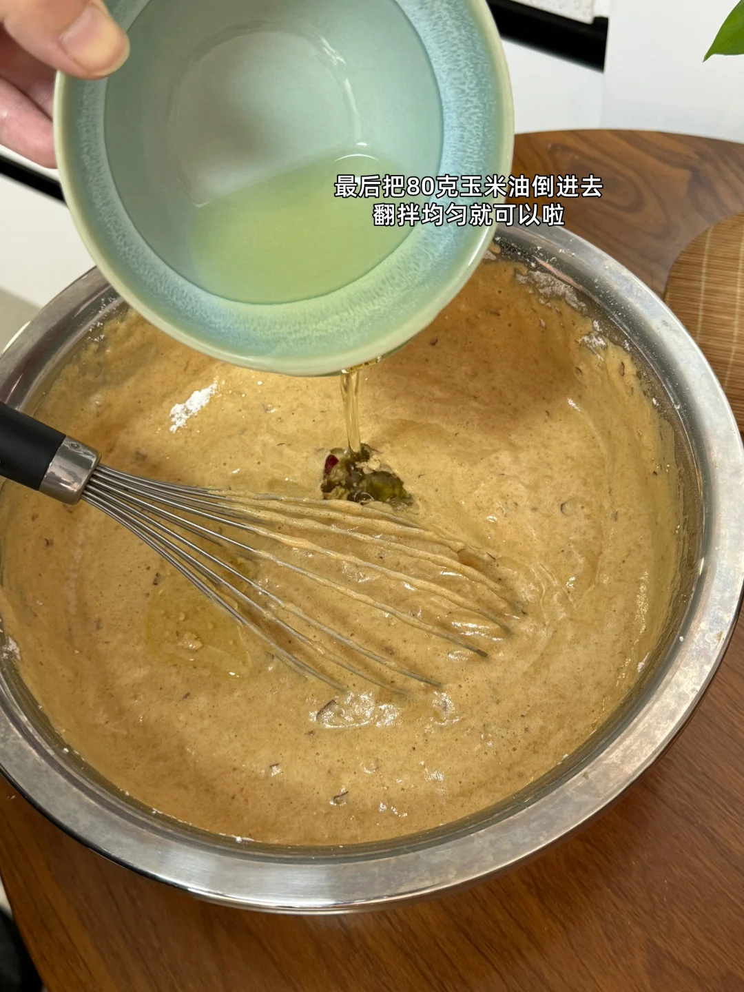 8. 最后把80克玉米油倒进去翻拌均匀就可以啦