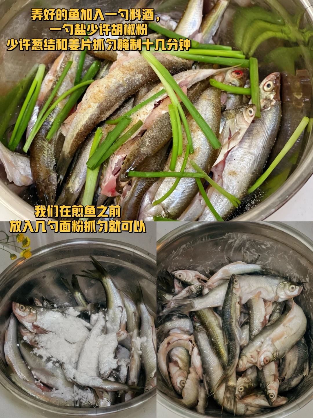 记得小的时候在乡下小河里面很多这种小鱼腌一下裹一点面粉炸一下特别的好吃,今天稍微改良了一下做法就成了一道下饭菜
