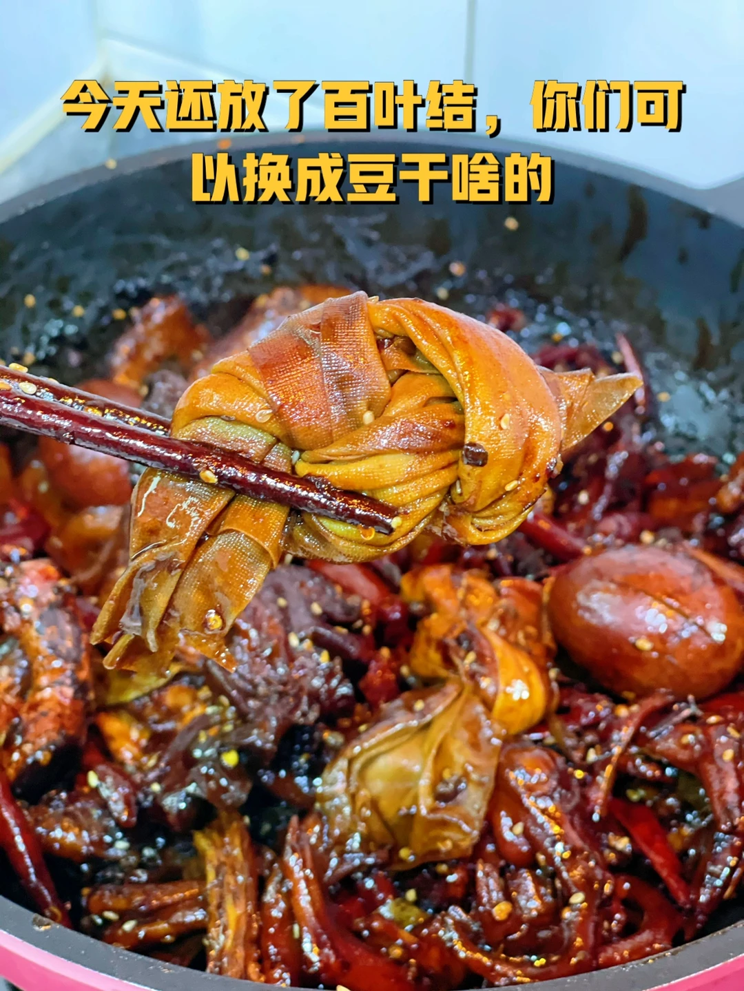 6. 素菜我今天用了土豆腐竹和豆皮,鸡蛋!你们可以根据自己的喜好,随意更换哦