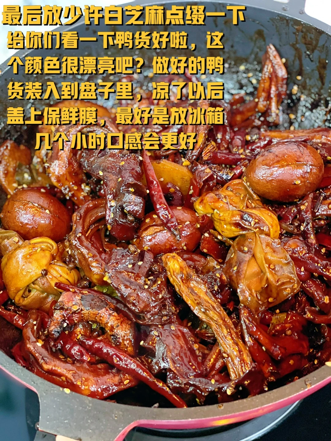 10. 再放入三勺甜面酱翻炒几分钟让鸭货们上上色