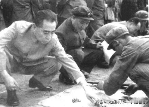 1964年,李达(左二)陪同周恩来(左一)、彭真(左三)观看战士蒙眼拆装枪械