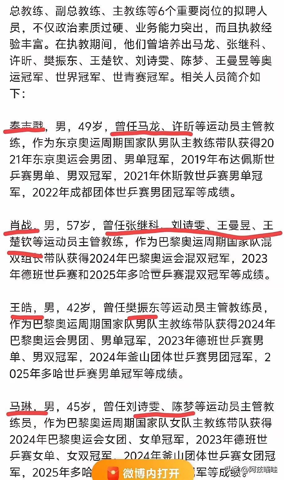 洛杉矶周期国乒新上任的总教练,秦志戬指导,一定要严厉打击那些恶毒造谣污蔑中国乒乓球队的人,特别是什么记者,体育评论员,他们为了流量昧良心故意造谣带节奏破坏中国乒乓球队,教练组团队一定要保护好运动员和自己的团队,无论是什么媒体只要是造谣破坏中国乒乓球队,就追究他们的法律责任。 朱雨玲被造谣污蔑她用法律武器保护自己很成功。
