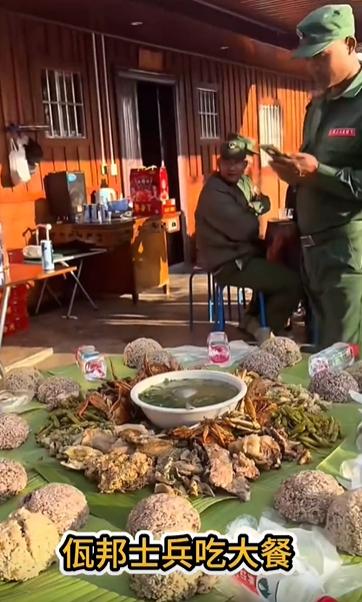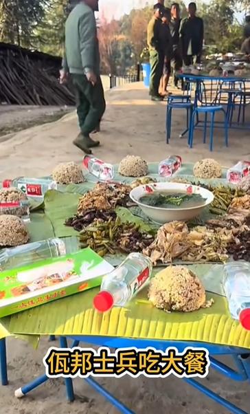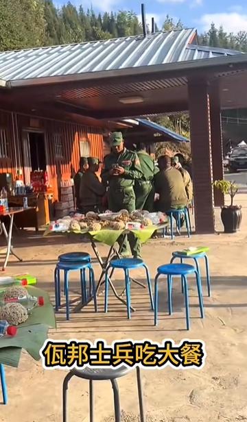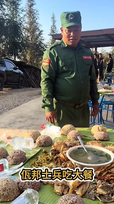 佤邦军队吃饭还是喜欢用手抓! 可以看到几张饭桌上的饮食很特殊,每人一份米饭,铺在芭蕉叶上,还不是纯的大米白饭,好像是杂粮饭和米饭混合而成。然后桌子上摆了一碗汤,他们连勺子和筷子都没有,怎么喝汤? 桌子上还密密麻麻的铺了好多肉和菜,这都是当地官兵习惯的意识,就是用手抓饭,爱卫生的手上套一个塑料袋,不爱卫生的直接下手抓。 大家也知道,饭前饭后洗手,但是这样直接用手抓饭的话,确实容易病从口入。但是世界上有大量的人群,喜欢用手抓饭,比如非洲、中东、南亚、东南亚地区,都喜欢用手抓饭,用筷子和勺子以及叉子,吃饭的人群,都不一定用手抓饭吃饭的人群多,这都是习惯问题。 佤邦就是这样,但是佤邦已经提倡用勺子和筷子,已经几十年了,但是上千年形成的风俗习惯,短时间无法改变,只能一步步慢慢来。