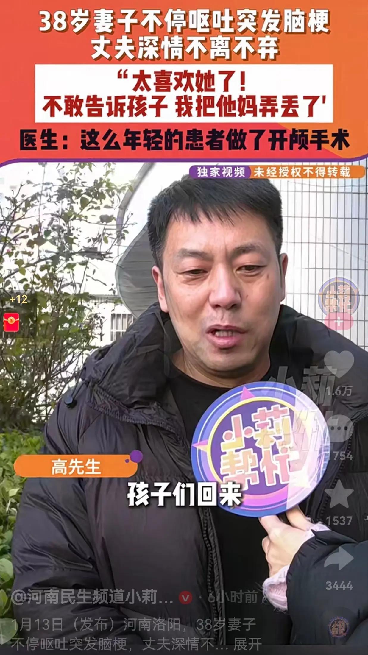 感人至深!38岁女子突发脑梗,丈夫一句“我愿用生命换她”感动千万网友,真情永不褪