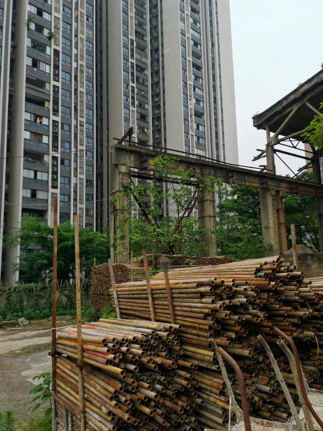 这几天翻到前年的照片,发现在五里店转盘附近庆业九寨印象背后山坡上,有一小块未开发的区域,里面有几个钢结构的工厂厂房,还有两栋家属楼。我当时进去问了问,是建工八建的家属楼和厂房,厂房里面堆的钢材等物品,家属楼应该是建于1980年代,外观已经非常破旧,里面基本都搬空了,还剩两三家人住着,好像还都是租房户。我走进二楼,正好遇到租房的房客回来,是一个大叔,他说租金非常便宜就200一个月租的。他打开房门我进去看了下,真的是家徒四壁,里面除了一张床,衣柜这些都是破烂不堪的,除了做饭的基本用具和锅碗瓢盆,其他啥东西都没有了。环境也是巨差那种。大叔说这里不久也要全部搬迁,不能够再租了,所以我也不知道现在这里到底还有没有人居住,毕竟一年多过去了,虽然这两栋家属楼还在。