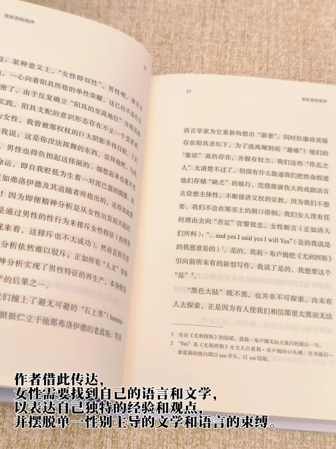 “美杜莎的笑声”是一种象征,美杜莎是希腊神话中的女妖,她具有将男人石化的力量,同时也代表了女性的力量和创造力。作者借此传达——女性需要找到自己的语言和文学,以表达自己独特的经验和观点,并摆脱单一性别主导的文学和语言的束缚。