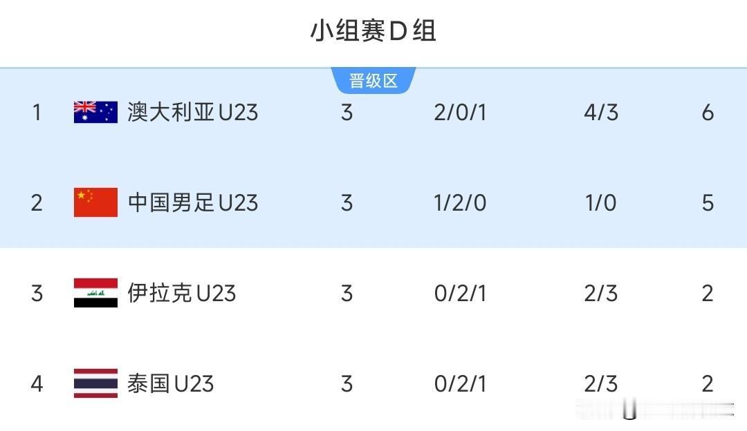U23国足晋级U23亚洲杯八强,带来一个坏消息,一个好消息。 坏消息是,小组赛第三轮被泰国队逼平,错憾失小组赛积分第一。小组最终积分: 1、澳大利亚,6分,丢3分,仅输国足。 2、中国队,5分,两场平局。 3、伊拉克,2分 4、泰国队,2分 好消息是,淘汰赛提前避开韩国队和日本队两大传统强队,也就是进入决赛前,都遇不上。 中国队接下来的赛程: 八强:中国队-乌兹别克斯坦 如果晋级四强:中国队-越南/阿联酋 虽然U23国足没能最终取得小组第一出线,但能在淘汰赛成功避开韩国队和日本队,与实力相对弱的乌兹别克、越南、阿联酋分到一个半区,也无疑为创造好成绩带来更大机会!