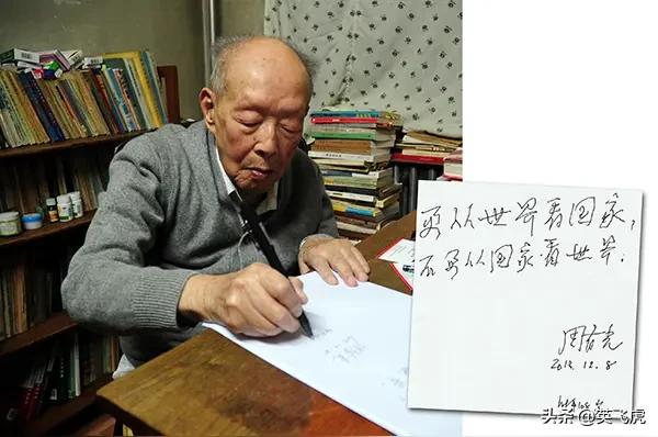 2011年,105岁的周有光说: “要从世界看国家, 不要从国家看世界”。