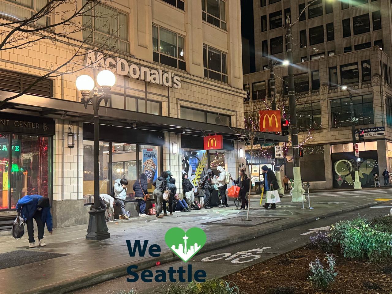 全世界最危险的麦当劳在美国西雅图:门口堵着一大堆“丧尸”,经常发生人命案!画面中的就是全世界最危险的“麦当劳”,位于西雅图市中心第三大道和松树街拐角处,被当地人戏称为“麦当劳刺客”。这里长期在门口和周围聚集大量的吸毒丧尸,在2020年1 月发生的一起枪击事件,该事件造成一名女性死亡,另有七人受伤,其中包括一名九岁男孩。因此从2020年开始,这家麦当劳已经不再允许顾客进入,顾客现在必须通过从餐厅原双开门位置开出的一个窗口点餐。窗口只在底部四分之一处留有一个小开口,以便顾客付款和领取食物。据当地人称,这里每天都会发生斗殴和抢劫,没有人报警,因为他们知道报警也没用。甚至警察也不管这里,一名警官说,自今年年初以来,他已经在麦当劳门前目睹了三起持刀伤人事件。