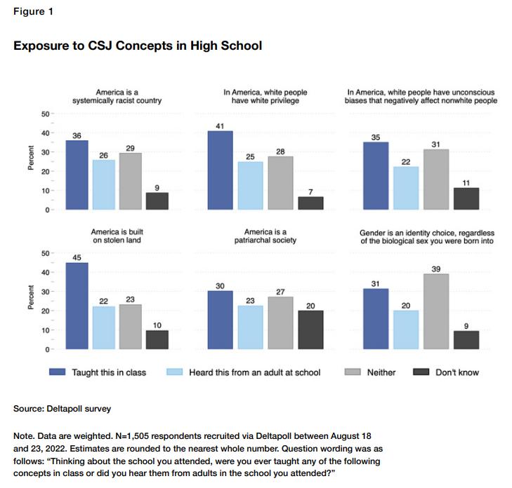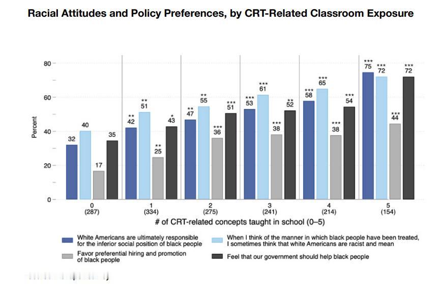 美国处于沙俄帝国晚期?大量学生认为美国不合法,这是一个偷来的国家……今日有美国研究者发布数据称,美国的爱国主义教育已经完全破产,因为在大多数公立学校里,老师教育学生美国建立是不合法的,美国是偷来的国家,这种情况接近于沙俄帝国末期。例如2022 年,45% 的受访高中生表示,他们在学校课堂上被灌输了“美国建立在偷来的土地上”的说法,另有 22% 的受访高中生从学校的老师那里听到过这种说法。此外有些公立学校中还有“批判性社会正义”(CSJ)教育理念,在这类学校中,更有73%的学生认同“美国建立在被窃取的土地上”这一观点。还有75% 的人认为白人应对黑人的低下社会地位负责,55%的人认为白人有罪,44% 的人支持优先雇用和晋升黑人。