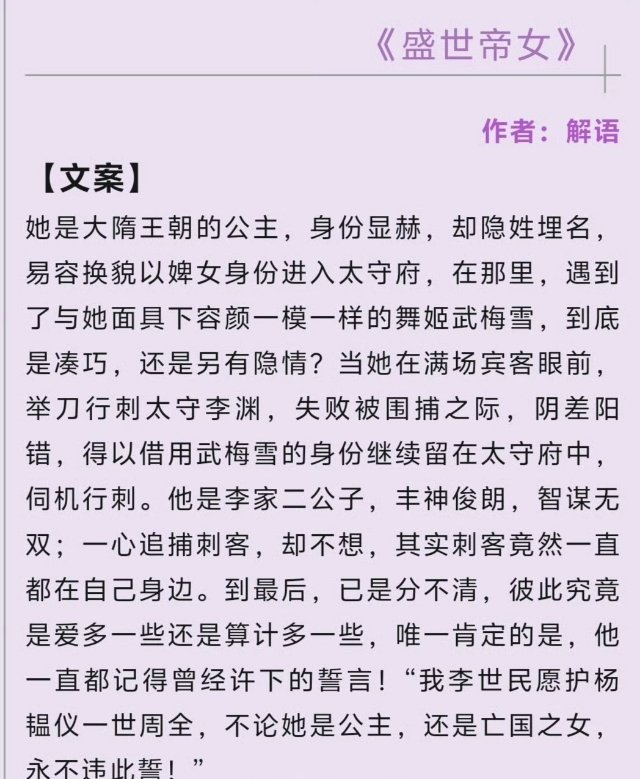🍉《杨妃传》深度接触章若楠原著《盛世帝女》,历史原型是李世民和随朝公主出身的杨妃,这剧最好改架空,李世民和长孙皇后的历史粉还是很多的,章若楠的古装扮相只能说小家碧玉,离大美女缺少点说服力