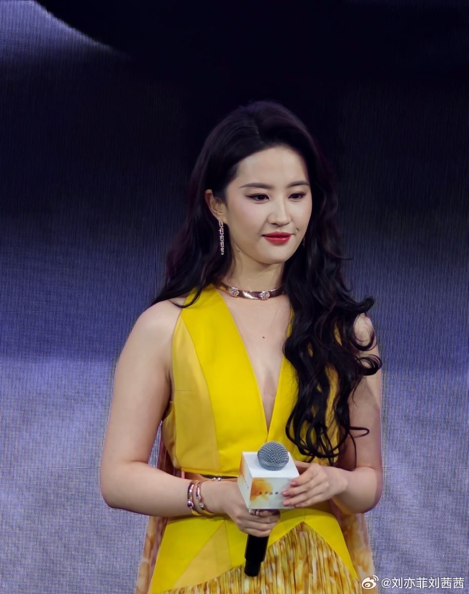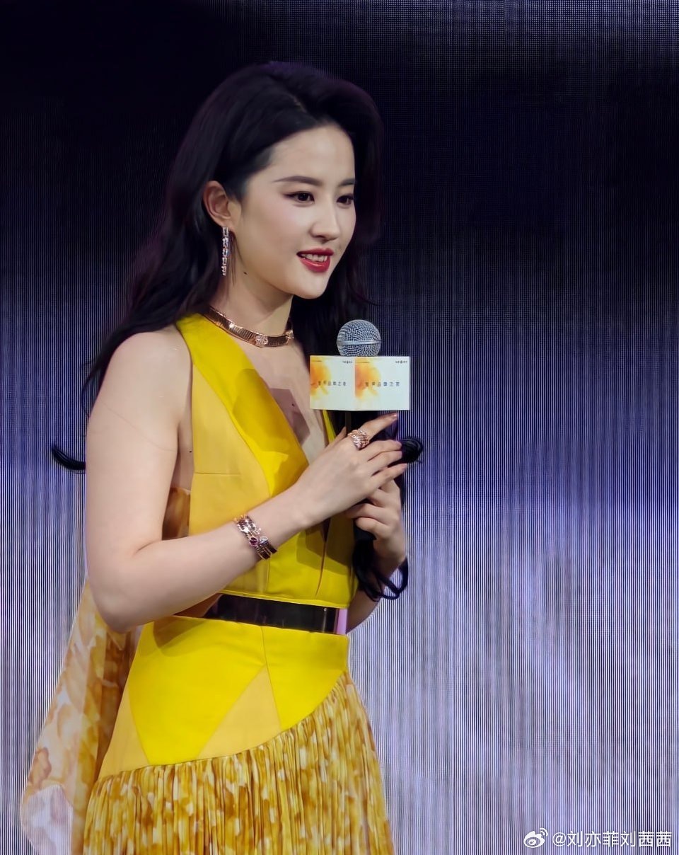 刘亦菲现身活动现场,一袭明黄色礼服惊艳四座,这造型简直美到犯规!刘亦菲此次亮相,身着明黄色无袖礼服,上半身亮黄面料剪裁得恰到好处,深V领设计更是勾勒出她优雅的肩颈线条。搭配黑色细腰带,不仅收紧了腰线,更显得身材比例完美。下半身的渐变黄百褶裙摆,增添了整体的灵动层次感,让人眼前一亮。在灯光聚焦的舞台上,她手持麦克风,背景是深色大屏,整个场景既正式又充满时尚感。形象气质方面,刘亦菲一头微卷长发慵懒垂落,搭配精致的金属项链与耳饰,红唇点缀更显得肤白胜雪。她举手投足间既有明艳张扬的时尚气场,又保留着独有的温婉古典韵味,优雅与明艳交织,完美展现了东方女性的魅力。刘亦菲此次的造型真是让人惊艳不已,既展现了时尚感,又不失东方女性的温婉韵味。刘亦菲刘亦菲