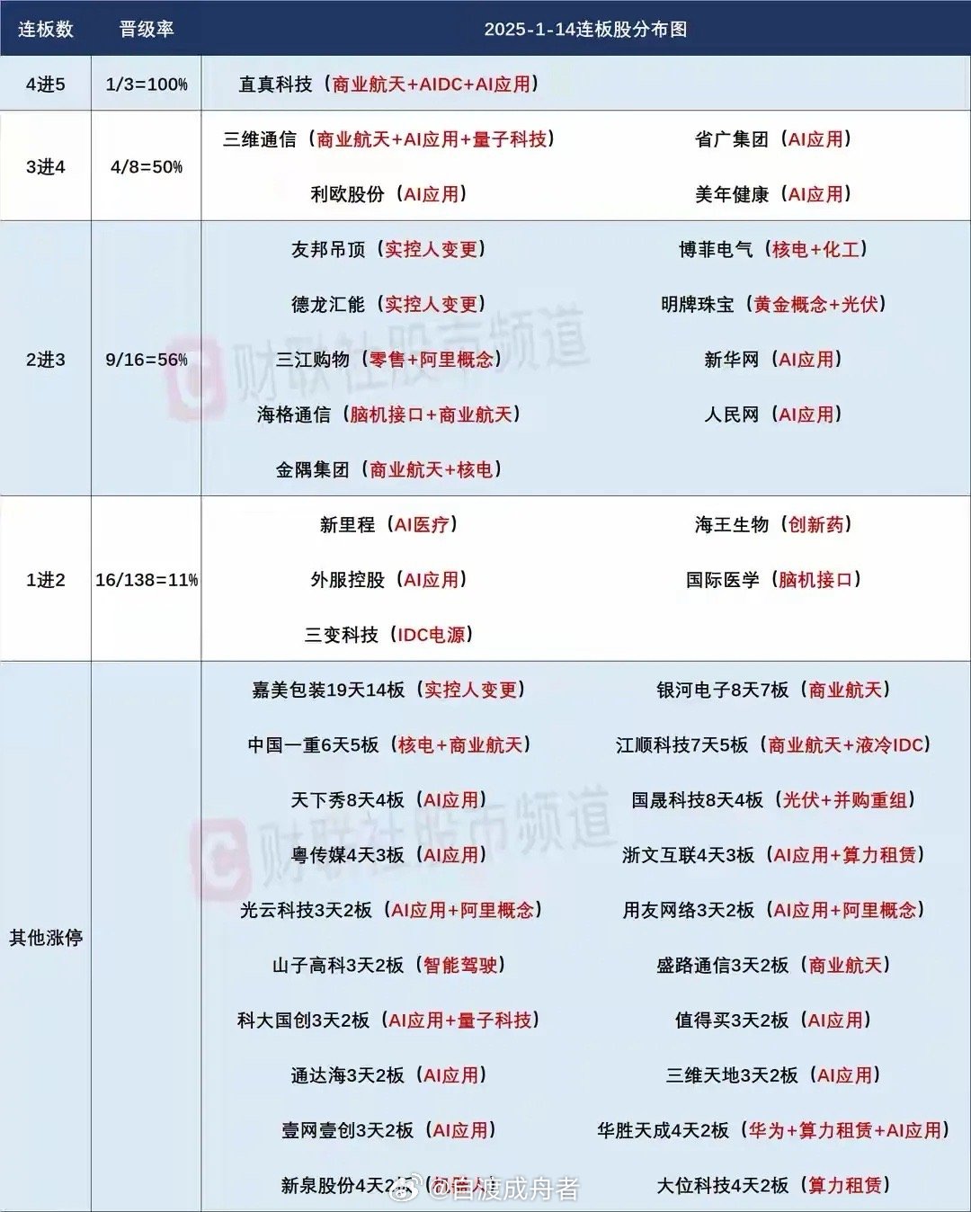 盘前预案:降温信号持续释放,大盘或高位震荡,AI应用与商业航天仍是轮动焦点1. 市场整体节奏:震荡整理为主,警惕高位异动股昨日早盘市场做多意愿强烈,三大指数强势拉升,沪指再创近期新高,反包形态亮眼。但午间融资保证金比例调整的消息引发午后跳水,量能快速放大呈现放量下跌,不过持续砸盘后仍有资金承接,最终成交额逼近4万亿,沪指小幅收跌,深指与创业板指收红。这一表现释放出市场主动降温的需求。叠加此前商业航天多股强顶异动后出现负反馈,盘后易点天下停牌核查、国晟科技与天普股份遭账户监管,多重信号均指向对当前过热炒作的降温。预计今日市场整体延续震荡整理,高位面临严重异动的个股需谨慎规避,资金或转向高低切换。2. 商业航天:分歧中存机会,关注核心标的表现相较于商业航天,AI应用昨日修复更强,市场有“AI应用取代商业航天成绝对主线”的讨论,但当前市场量能足以支撑双主线并行,且盘后龙虎榜显示商业航天仍有大量资金介入,退潮信号尚未出现。• 三维通信:连续一字板确认强势,在板块分歧中表现类似此前鲁信,开板放量时机关键。若开板时板块未现大分歧,晋级顺理成章;若遇分歧,深水抄底存在机会。今日竞价续顶一字概率大,开板后的强承接值得关注。• 海格通信:板上成交超80亿晋级,龙虎榜游资接力换手良好。盘后发布2025年报预亏公告(前三季度已亏1.75亿,年报亏损属预期内),类似昨日中文在线的“利空出尽”,对走势影响有限。其能否持续走强,取决于板块修复力度——开盘修复强势则竞价信号积极,反之或延续分歧。• 航发科技:作为板块前核心,其能否止跌企稳对板块情绪带动显著,开盘表现是重要观察点。3. AI应用:修复动能强劲,聚焦核心标的节奏AI应用昨日修复强于商业航天,GEO方向尤为突出:利欧股份开板后快速承接晋级,浙文互联开盘强势反包,释放全面修复信号,早盘新易中天虽午后回落,但板块整体趋势向好。• 利欧股份:面临严重异动风险(主板异动监管较严),若GEO方向强度不足,大概率主动断板,尾盘或卡异动或顺势调整,今日适合水下有承接时低吸,不建议追涨。• 省广集团:与利欧股份同身位,利欧受异动限制为其提供卡位机会。若GEO持续强势,省广需展现弱转强冲板动能,板上承接晋级值得关注。• 浙文互联:反包形态类似引力传媒,作为板块最早涨停股,情绪上预期顶一字,其强度可视为GEO方向的风向标。• 蓝色光标:虽处异动监管中,但其趋势表现是板块强度的另一参考——若趋势稳健则板块无忧,若深水负反馈需警惕分歧扩大。4. AI医疗及其他标的:聚焦龙头与资金态度• 美年健康:AI医疗核心标的,昨日T字板放量承接亮眼,今日预期涨停价开盘。若AI板块整体分歧,或出现下杀承接机会,作为龙头,高开下杀后的强支撑低吸值得把握。• 华胜天成:陈小群介入提升市场关注度,但近期对其追捧过度,需警惕情绪退潮。今日若AI分歧,其非绝对前排的形态或存风险;若板块强势,上板时的强承接可关注。• 岩山科技:未封死涨停且面临严重异动,虽做多资金仍在,但脑机接口题材渐冷,不建议追涨,趋势需持续观察。本文仅为交流分享,不构成投资建议。股市有风险,投资需谨慎。