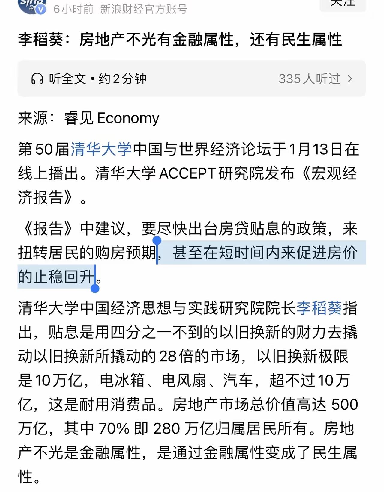 这是在倒逼房地产回暖上涨! 过了一个年,2026年开始。房地产的风向完全变了! 好像一瞬间,全网都在催促房地产赶紧止跌回暖,又是要求尽快出台房贷贴息的政策! 一会又强调房地产的金融属性,不光是金融属性而且还有民生属性。 这真的得,不涨都不行了!