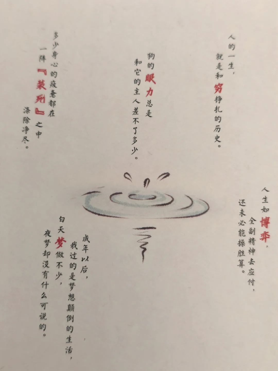 他像一位蹲在路边观察蚂蚁的孩子,用幽默的笔触记录人类的荒诞与可爱:“谁说有鬼谁举证”“能笑与不能笑,是人与非人的区别”。这哪里是散文?分明是一张偷懒许可证,他告诉我们,人生不必活成标准答案,做个“不合格”但鲜活的人,更有趣。