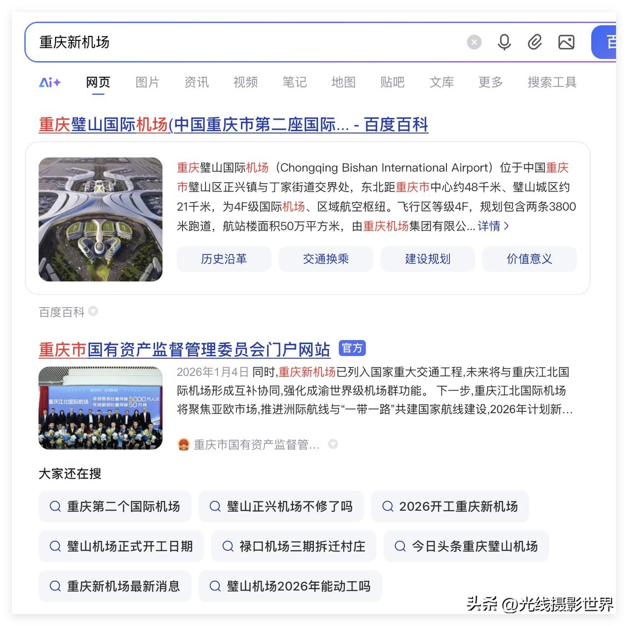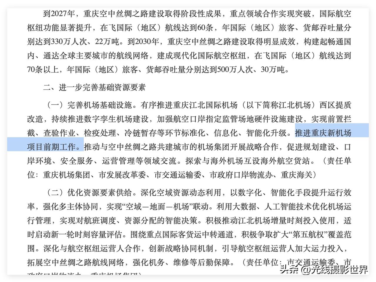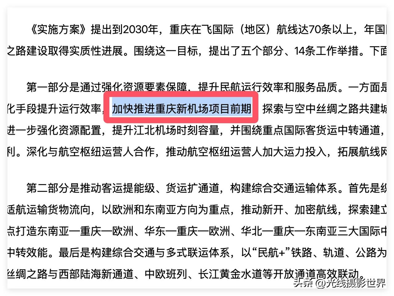 看到网上有些人说重庆新机场、重庆璧山机场、重庆第二机场……即将于2026年开工建设……所以,1月15日晚上,我上网搜了搜,查了查……比较权威的说法……主要还是,“推进重庆新机场项目前期工作”…… 所以……即便是2026年搞了一点象征性的工程开工……但是,要想真正的实质性的开工建设,要想满负荷的大干快上的加紧建设……恐怕还需要2-3年或者更久吧?! 反正,按照目前这个情况,2030年想要建成投用……估计是很难很难…… 毕竟,重庆新机场,还要配套建设地铁、城际铁路、高铁、高速公路、快速路网……很多东西,很多配套……这个是一个很大的系统工程……相当于是完完全全的从零开始…… 应该说,是不容易的…… 当然,也不排除每天24小时三班倒加班加点……钱给足……满负荷运转施工…… 总体来说,按照中国经济的发展和西部开放的未来潜力,重庆新机场,应该会迟早都会动工的! 再晚,应该不会迟于2030年开工建设吧?! 大家觉得呢?