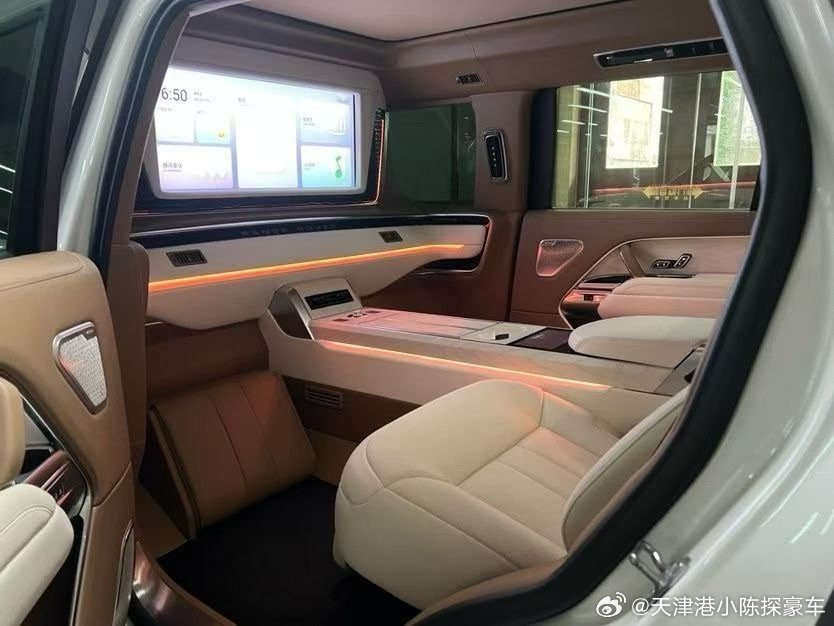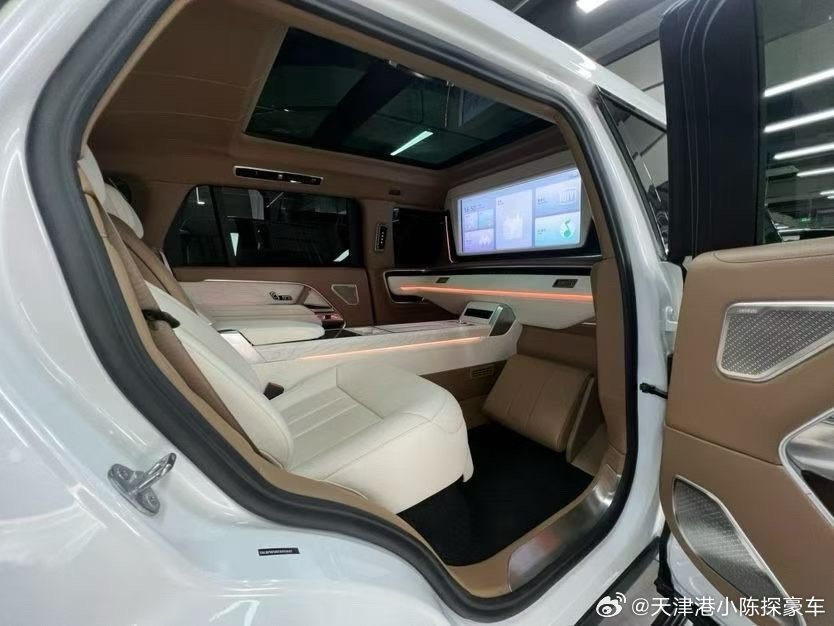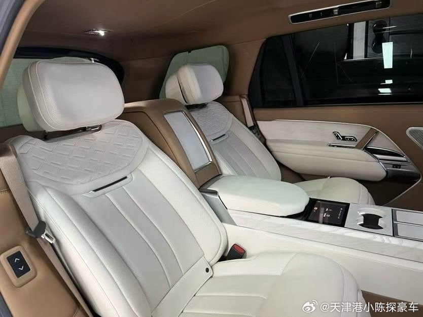揽胜行政 23款 3.0T 皇家一号 5.9米白/棕象牙白双拼内饰 当天票基础参数外廓尺寸:5975mm/2000mm/1920mm轴距:3910mm发动机:3.0T直列6缸汽油P400驱动形式:全时四驱整备质量:2835kg变速箱:8挡手自一体油箱容积:90L定制项目1.整车内饰包覆进口小牛真皮2.整车白桦木风格饰件3.后舱升级路虎原厂座椅(通风、加热、按摩)靠背前后调节,电动升降头枕,腿托高低调节,腿托二级调节,座椅45度抬高调节4.后舱升级路虎原厂触摸屏(空调调节,座椅调节,氛围灯调节,冰箱)5.后舱升级路虎原厂储物箱(USB接口,type-c接口,点烟器)6.后舱升级路虎原厂座椅控制按键7.后舱升级电动升降桌板(手动折叠)8.后舱升级电动升降34寸高清网络娱乐电视9.后舱升级氛围灯,可储物脚枕,储物夹,触摸式壁灯10.后舱定制驼色羊绒脚垫