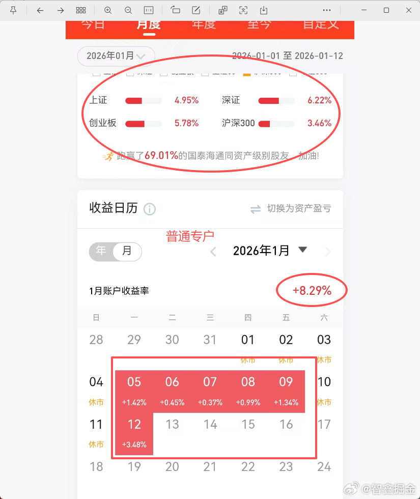 这个开门红还不错,两个专户,杠杠的,全都跑赢大盘指数。普通专户6个交易日全红,8.29%的收益;北交所专户6个交易日5红1绿,收益12.89%的收益。还是的北交所强、弹性大。北证50早期先于大盘调整启动,目前进入主升行情了。A股 北交所
