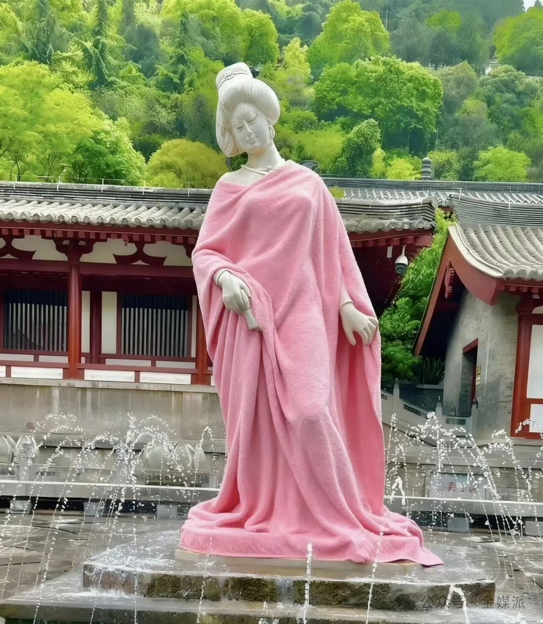 最近被一条新闻惊掉了一颗大门牙。新闻说的是,有多名网友发帖称,西安临潼华清池景区内的“贵妃出浴”雕像因袒露上半身(图1),存在“不雅观”“败坏社会风气”等问题。都2026年了,居然还有这样的争议?何夕何夕啊?那些发帖的什么网友是不是从几百年前穿越而来的啊?现代社会应该不适合他们生活,请滚回中世纪去吧。有人打趣说,他们是从宋朝穿越而来的吗?因为宋朝太保守了,女子的衣着就像包粽子似的将身体包裹起来。这误会太深了,得来讲一下宋朝女子的服装是否保守的问题。这几年我接触了一些宋代风俗画,图像史料上的宋朝女性装束,比文献记录更直观、更真切地向我们展示了宋代女子的服装审美风格。南宋刘松年的《茗园赌市图》(图2),画有一名提茶瓶市井女子,你看她的着装,内衣外穿,酥胸微露,哪里有半点裹得严严实实的样子?有人或许要问了,做小生意的市井女子为了招徕顾客才穿得这么暴露吧?就如现在台湾的“槟榔西施”之类。那好,来看其他的宋画——南宋梁楷的《八高僧故事图卷》(图3)中,有一名汲水的女子,着装性感大方,可以看到她的红色内衣与半个丰满的胸脯。梁楷的另一幅作品《蚕织图卷》(图4),画中的普通家庭妇女,穿的也都是低胸的上装,露出贴身的内衣。而在引领女性审美潮流的宋朝上流社会,女子“内衣外穿”就更是时尚了。这一点可以从宋词中看出来。北宋诗人赵令畤有一首《蝶恋花》,描写了一位娇羞的贵家闺中少女:“锦额重帘深几许。绣履弯弯,未省离朱户。强出娇羞都不语,绛绡频掩酥胸素,黛浅愁红妆淡伫。”请注意“绛绡频掩酥胸素”这一句,是说那位少女穿着素雅的丝质抹胸。按学者孟晖《中原女子服饰史稿》的考证,“内衣外穿,袒露颈、胸,实在是有宋一代的平常风气,虽然其裸露程度较之前代有所收敛”。显然在宋朝那个时代,人们并不觉得女子微露“事业线”是一件很羞耻的事。那些抨击“贵妃出浴”雕像“不雅观”“败坏社会风气”的网友,脑子还不如宋朝人开明呢。最后转几张网友故意给“贵妃出浴”雕像P上衣服的搞笑图片(图5、6)。快过年了,大伙笑一笑。