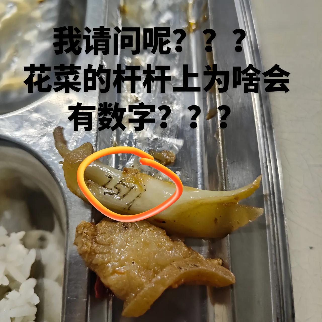 天呐,这花菜是成精了还是自带防伪编码啊? 讲真,正吃着饭呢,低头一看这花菜杆子上清清楚楚印着“2511”,说实话,我这拿筷子的手都抖了一下。哎,以前只听说过猪肉要盖章,这年头连蔬菜都得凭“工号”上岗了吗?挺现实的,第一反应不是这菜好不好吃,而是这数字到底代表了啥,难道是这颗花菜的身份ID? 说真的,这印记看着像激光打上去的,又像是某种记号笔蹭到了。挺反差的是,这菜炒得还挺入味,可盯着这串数字,我是真有点下不去嘴,总觉得自己在吃什么高科技零件。 大家在食堂或者外面吃饭遇见过这种“带编号”的菜吗,这到底是个啥情况? 生活奇闻 食堂饭菜