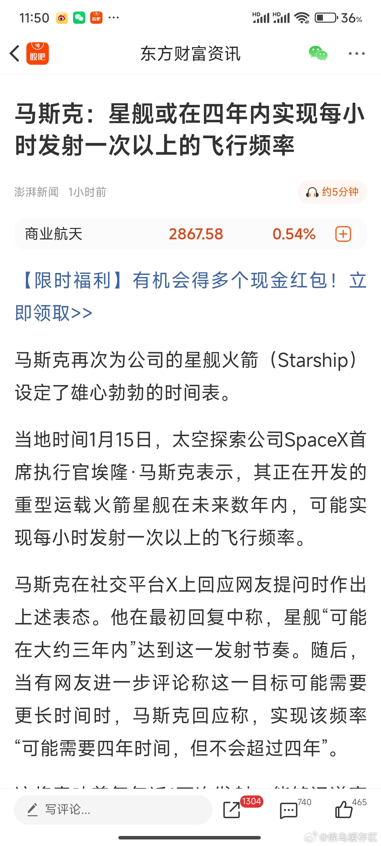 马斯克:星舰或在四年内实现每小时发射一次以上的飞行频率
