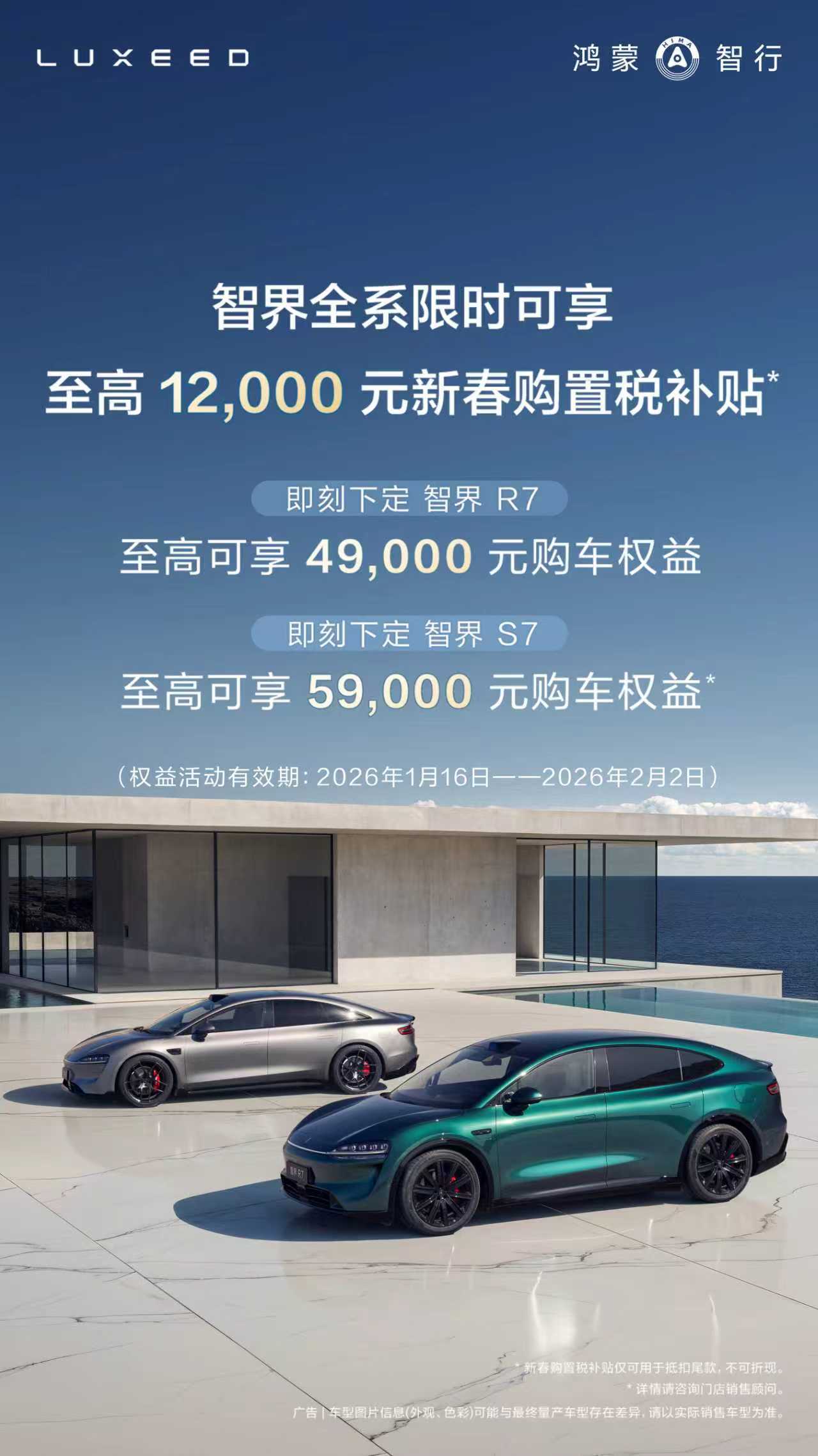 智界R7 还可享购车权益至高42000元 擦,刚开年就这么猛,车企还在兜底购置税,我以为年底兜完就得了呢。智界全系车型可享受至高12000元新春购置税补贴(可用于抵扣尾款不可折现),智界新S7 这个最高能拿 59000元。给我甲壳虫高价回收了我买一辆。