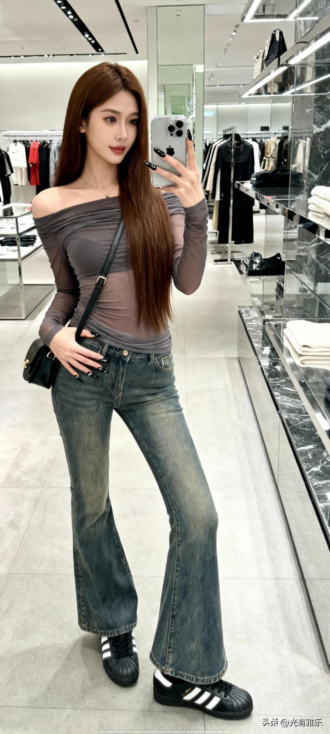 这位美女在店里自拍,穿搭时尚有型。你们喜欢什么类型的美女