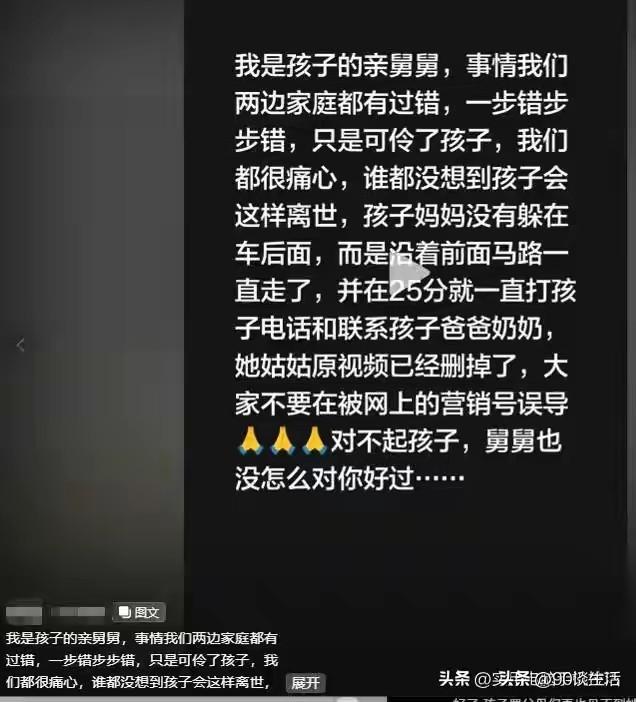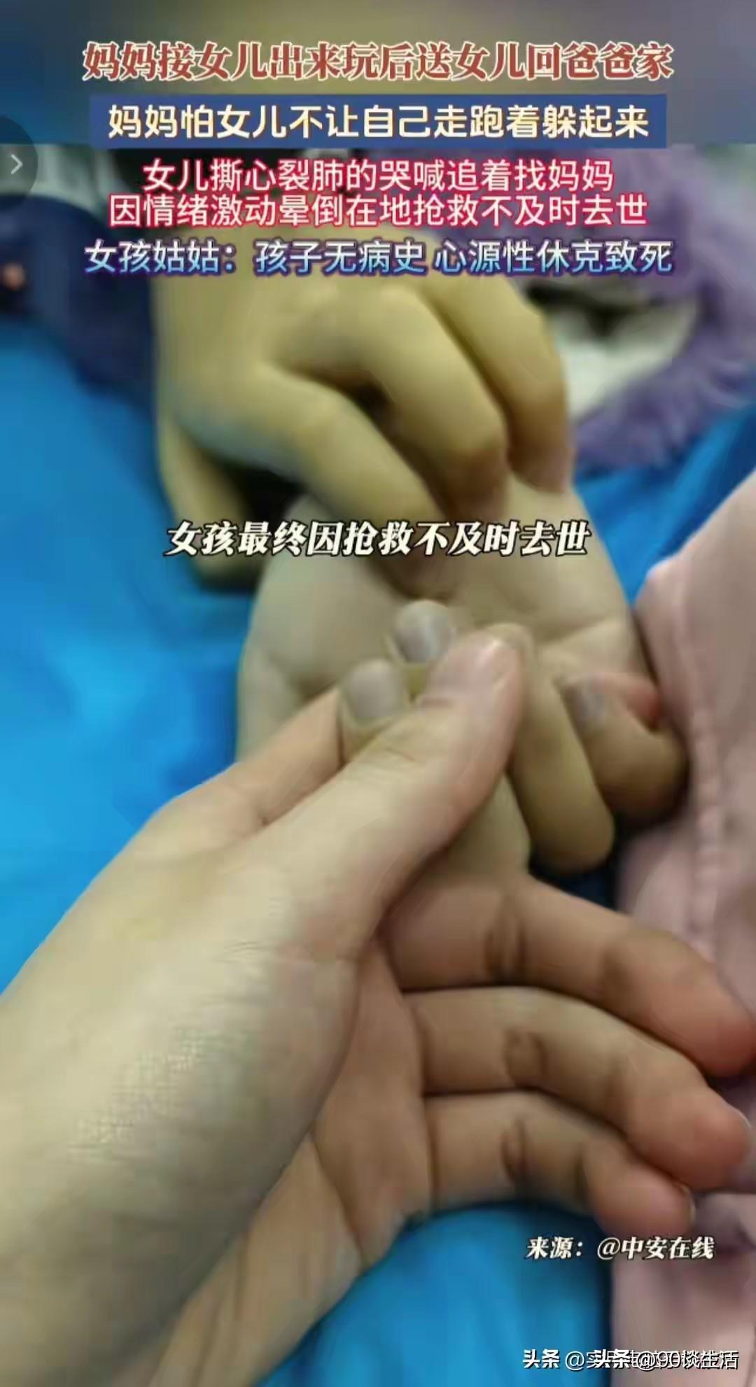哭着找妈妈倒地身亡的9岁女孩的原因找到了!事发后,孩子的舅舅表示,是双方都有责任。父母双方监管责任的缺失,说明白点就三个字“责任心”! 事发前,妈妈已经哄了孩子很长时间,还亲自把她送到楼下,并且给孩子的奶奶和爸爸都发了消息,孩子的奶奶就在楼下开麻将馆。没想到的是,最终孩子还是倒在了离家不远的地方! 孩子爸爸妈妈是离婚了的,抚养权在爸爸手里,妈妈也只能偶尔来看孩子,接孩。出去玩,母子相处的机会就很少。 大家都低估了孩子对妈妈的依赖程度,孩子和妈妈待的几个小时很快就过了,孩子拉着妈妈不让走,妈妈哄着孩子带回前夫家。妈妈把孩子送到楼下奶奶开的麻将馆那里,并且给孩子的奶奶和爸爸都发了信息说了这件事。但是小孩子看见妈妈走了,就大哭大闹跑出来找妈妈。 妈妈以为小孩子哭一下就好了,以前那几次也是这样,下次来看孩子的时候多陪陪,谁都没有想到,这次孩子就因撕心裂肺哭着找妈妈几分钟后倒地身亡了! 事实上,孩子妈妈离开后不久不仅给孩子奶奶发了消息问,也尝试给孩子的电话手表打电话,但没有打通,最后联系了在外面的前夫,通过电话手表定位才确定到家了…… 如此说来,发生悲剧的原因: 1.双方父母监管的缺失,交接不当。尤其是离异家庭,父母双方的一方从另一方手里接走,就该原原本本亲手交还到对方手里,孩子小不懂事,更应该好好安慰。 2.不要把孩子交给开麻将馆的奶奶带。带孩子是一门辛苦的活路,需要耐心和毅力,更需要时间,“赌徒”是很难带好孩子的。 3.孩子情绪缺乏梳理。孩子小,不懂事,但是比普通的孩子更加敏感,所以离异家庭要要更加注重这方面的。 所以,不到万不得已千万别离婚,离婚受伤害最大的就是孩子,才9岁就以这样的方式的离开了,真是太可惜了! 给有孩子的父母提了个醒:凡事都得多考虑点孩子!