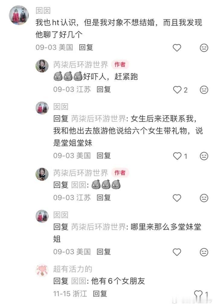 上海一女生认识一个巴基斯坦留学生,很快她就成了他的女朋友。为了表明她对他的忠诚,女生出钱出力,带着她的外籍男友环游世界,购买礼物。令她没有想到的是,她的男友还要她买六份礼物,带给他的堂姐堂妹。这个时候,她才发现男友竟有6个中国女朋友