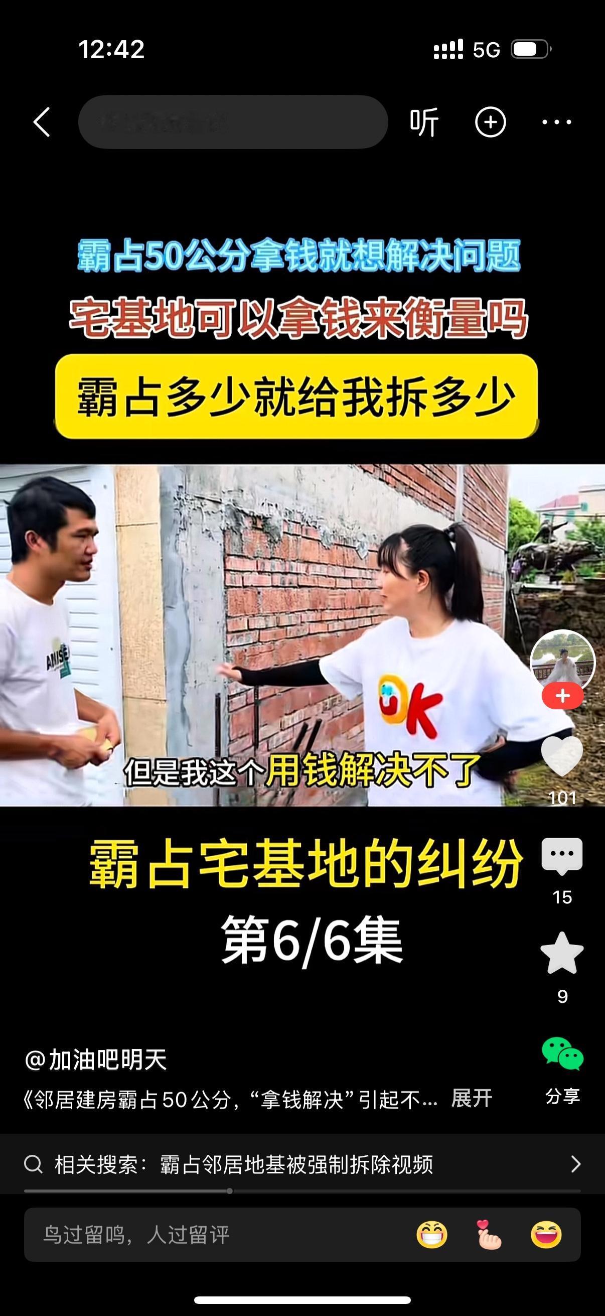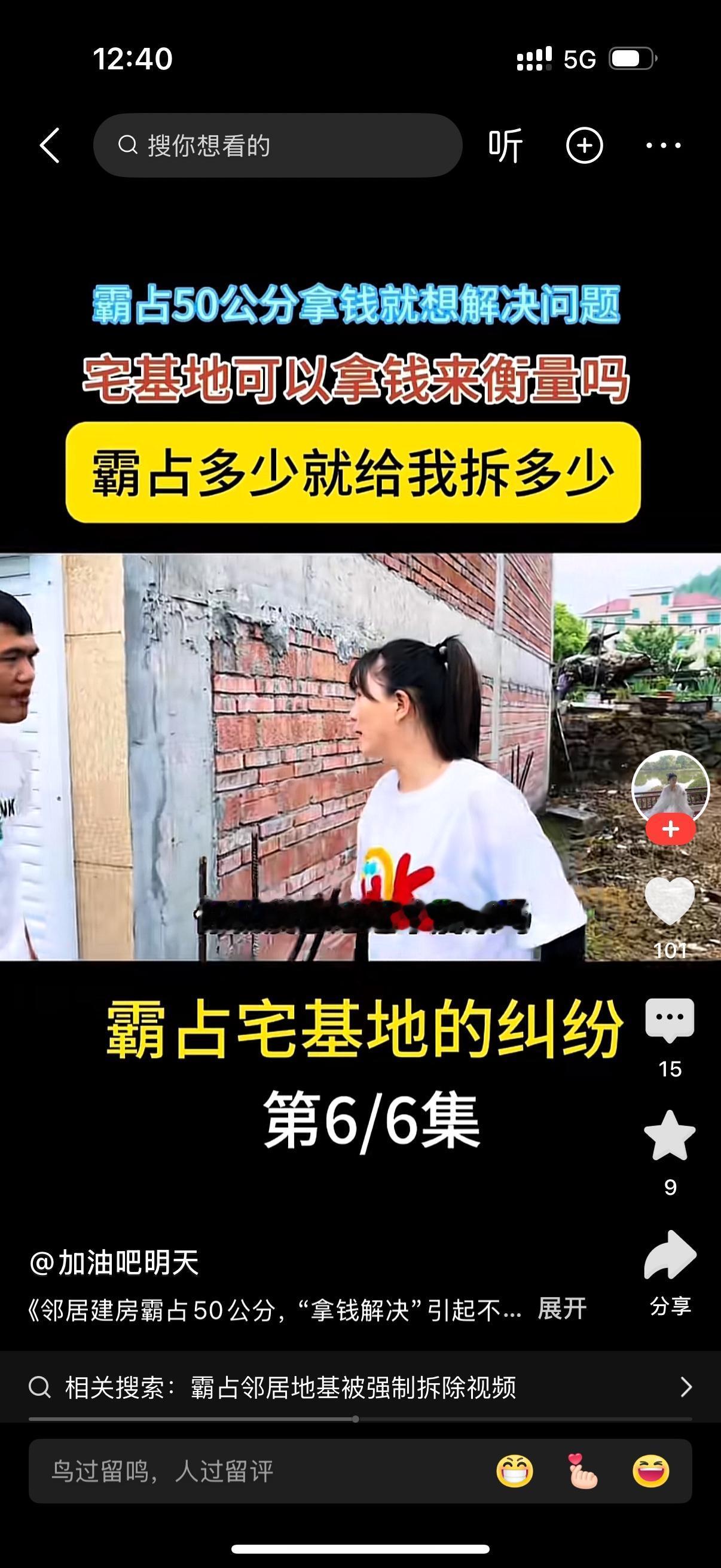 男子把女邻居留出来的50公分宅基地给霸占了。女子要男子把占的地拆掉。男子想用钱解决问题,他说我这个已经建好了,不好拆。你不是要建房吗?这里是一万块钱,50公分也差不多这个价钱。女子说自己不要钱,钱在这里解决不了问题,坚持让男的拆掉。男的哭爹喊娘,我怎么拆吗?房子都建好了。女人说,早知今日何必当初?霸占我宅基地的时候怎么就没想到后果?你以为你建好了就拿你没办法?男子一筹莫展,他不知道怎么办。