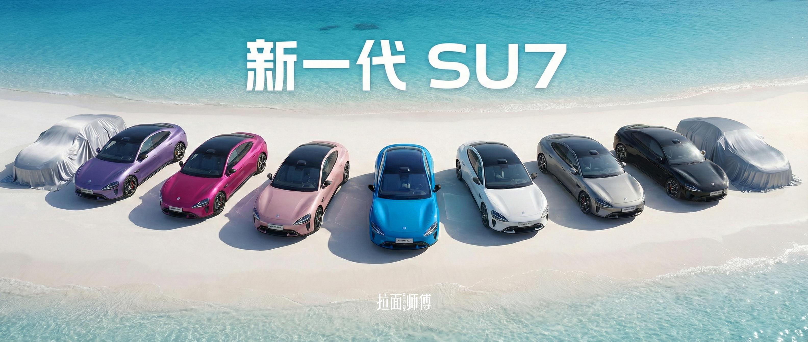 雷总晚上直播公布了新一代SU7的部分颜色,我P到了海报上,大家可以看一看效果。这