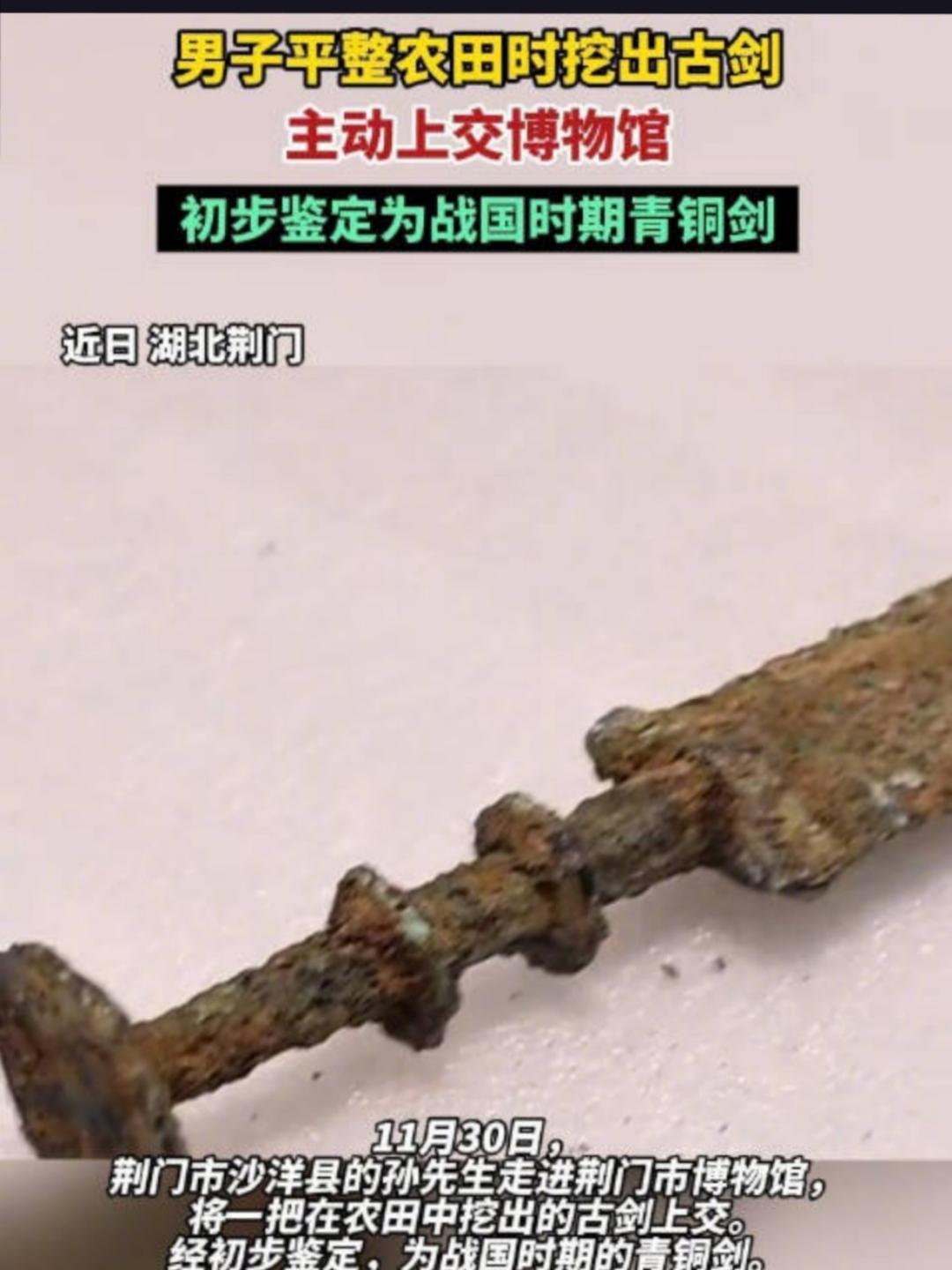 湖北一工友意外挖出疑似战国青铜剑,上交获200元奖励,引发广泛关注。 湖北浠水县绿杨乡的一名工人毕先生在工地施工时意外发现了一柄剑柄呈竹节样式的青铜剑,经初步判断可能为战国时期文物。毕先生随即联系当地浠水县博物馆并将其上交,博物馆确认后给予他200元表彰性奖励。这一事件迅速成为社会热点,围绕奖励金额是否合理、如何平衡公民义务与国家利益展开激烈讨论。专家指出,《文物保护法》明确规定地下文物属国家所有,公民有保护和上交义务,但现行奖励机制存在较大争议,奖励金额往往无法反映文物的真实价值。此外,公众对博物馆后续处理流程的透明度亦存疑虑,担心文物入库后可能被调包或私售。尽管毕先生的行为得到了广泛赞誉,但这一事件引发了对现行文物保护政策的深刻反思。 青铜长剑 战国青铜镰刀 战国楚墓竹简