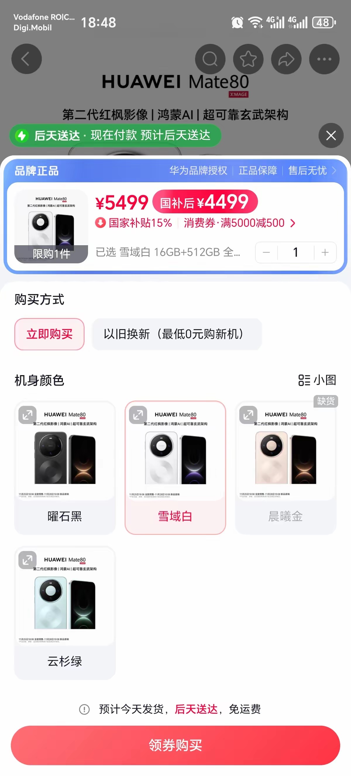 抖音领个满5000减500加上国补16+512 Mate80 标准版 4499太香了当下最高优惠力度 我的鸿蒙体验可靠的mate华为华为
